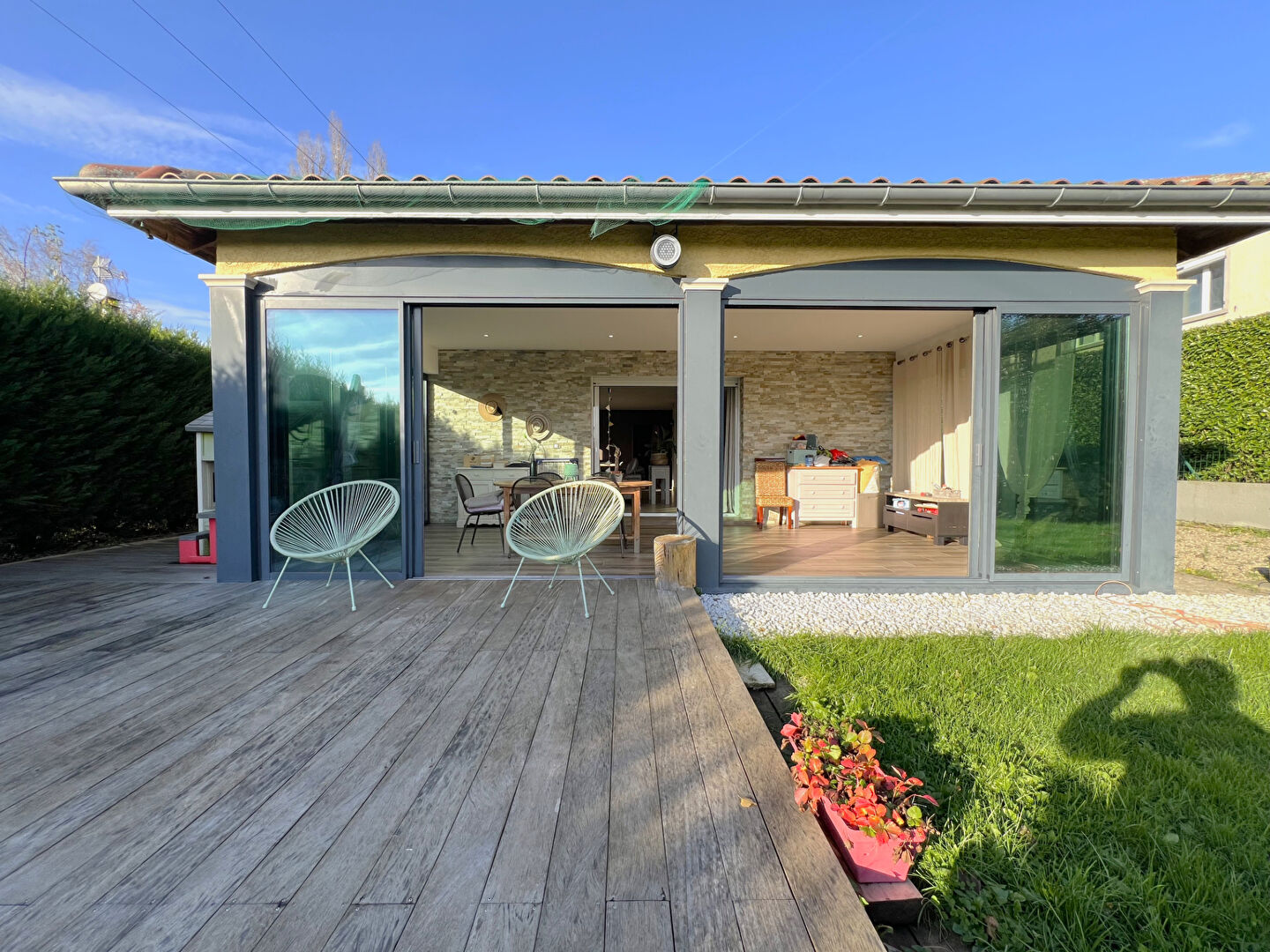 RETOUR A LA VENTE - Faramans, EXCLUSIVITE Emotion Immobilier Meximieux. Villa 4 pièces d'env 124m2 ( 150m2 utile ) édifiée sur terrain de 1321m2 composée d'une spacieuse pièce de vie ouverte sur l'extérieur, d'un salon d'hiver isolé baigné de lumière, d'une buanderie, de trois chambres avec dressing dont l'une dispose d'une douche, d'une salle de bains avec baignoire, douche et double vasque ainsi qu'un WC. L'espace extérieur dispose d'une cour bitumée permettant le stationnement de plusieurs véhicules, d'un garage double avec auvent ainsi qu'une terrasse donnant sur jardin piscinable. Maison familiale et fonctionnelle, environnement agréable, chauffage bois + élec, double vitrage. Vous avez un projet de vente ? Bénéficiez de notre expertise locale et de nos services premium : - Photos professionnelles - Prises de vue drone - Vidéo immersive - Diffusion multi-portails - Accompagnement personnalisé jusqu'à la signature Contactez-nous pour une estimation offerte et sans engagement.