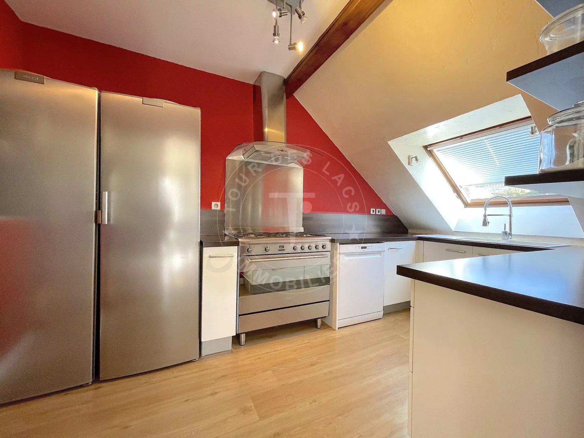 Bel appartement de 3 pièces + mezzanine situé au coeur du village de Menthon-Saint-Bernard. Il se trouve au dernier étage d'une petite résidence.