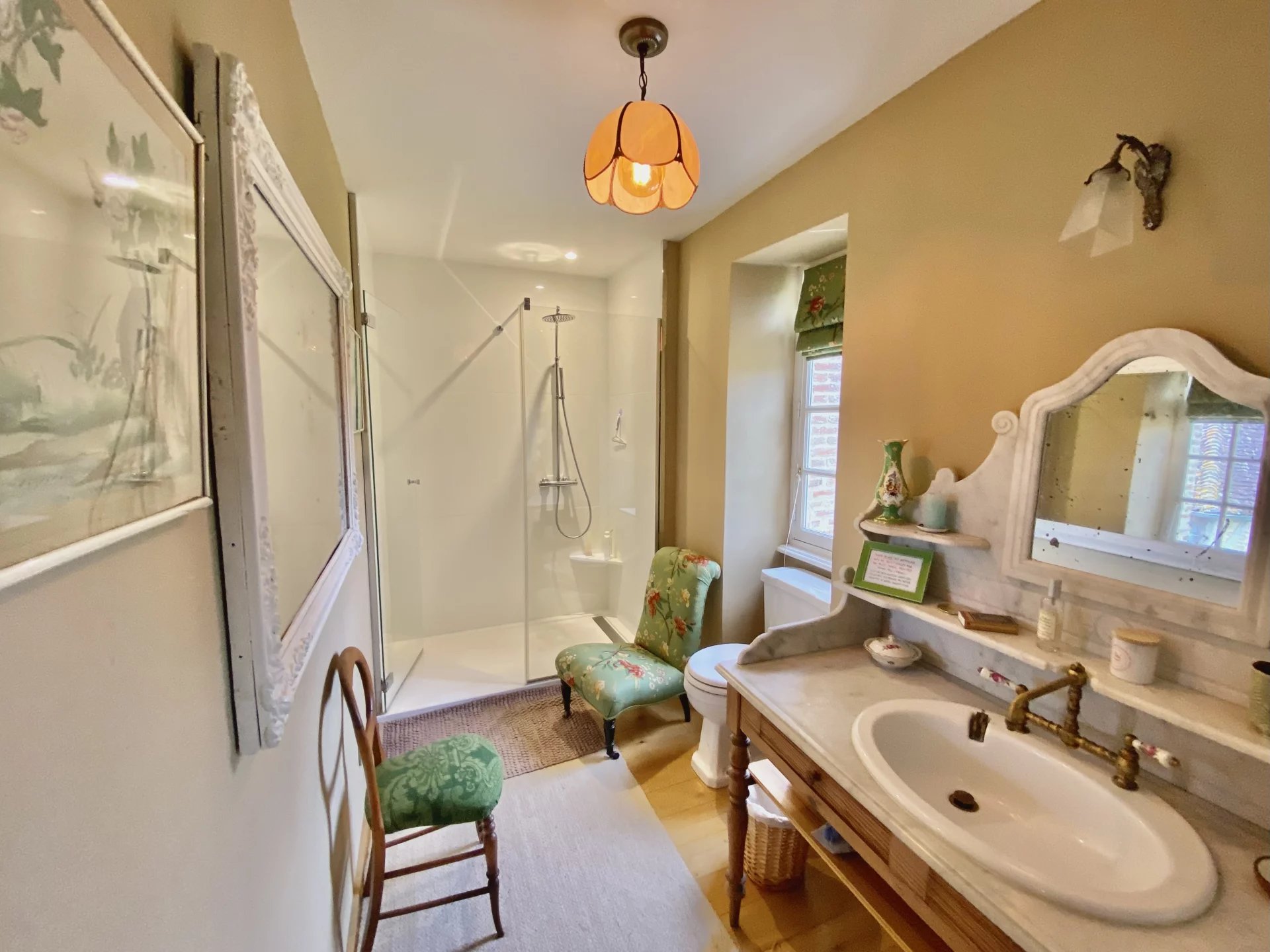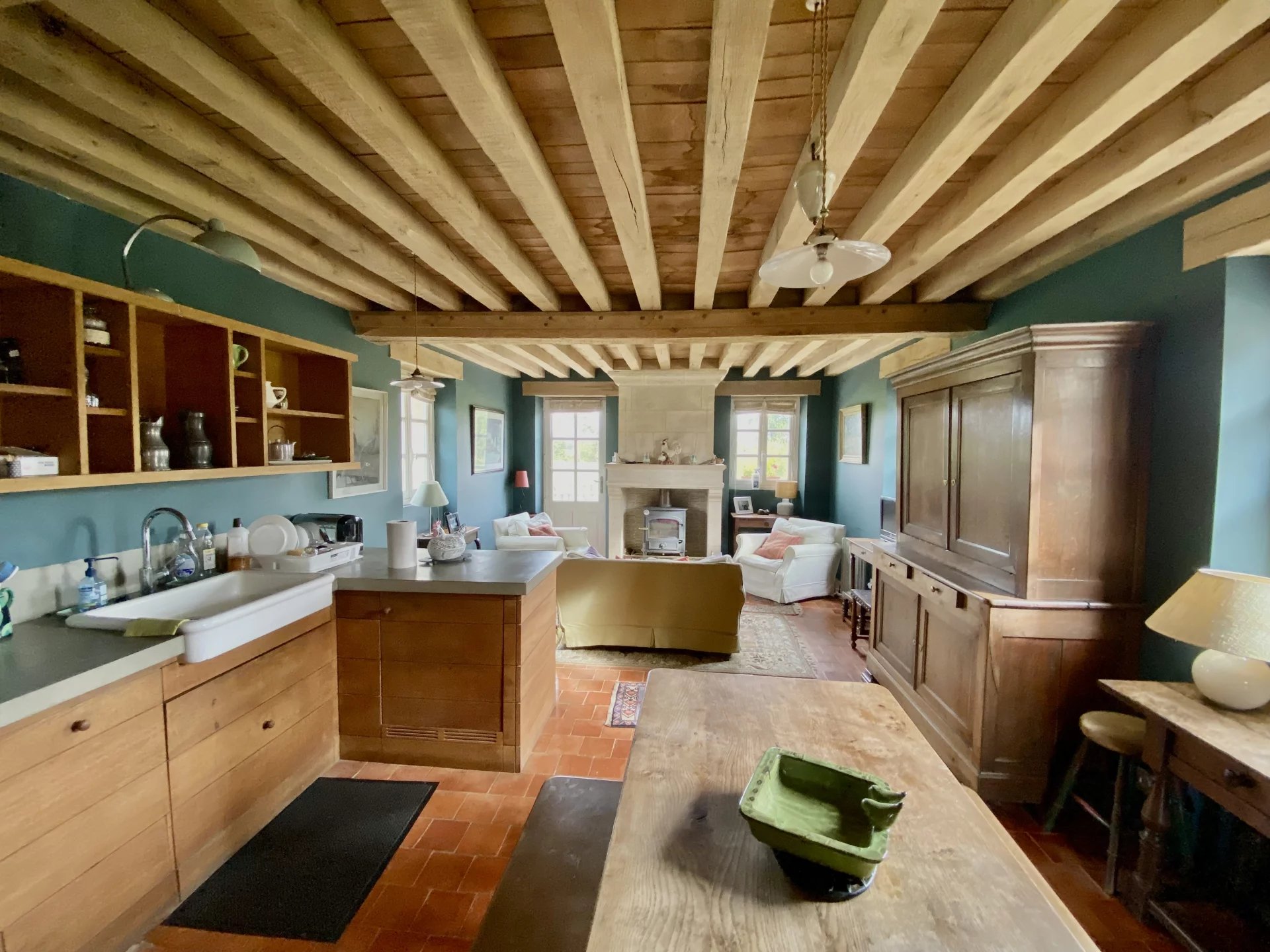 - Séjour avec cheminée, cuisine, 2 chambres, 2 salles d’eau