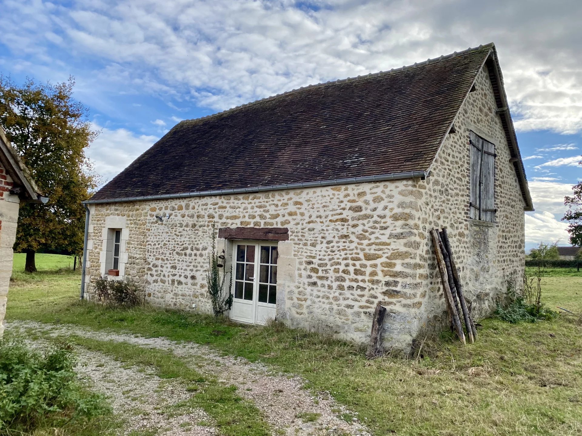 - Ancien pressoir avec porte vitrée et fenêtres