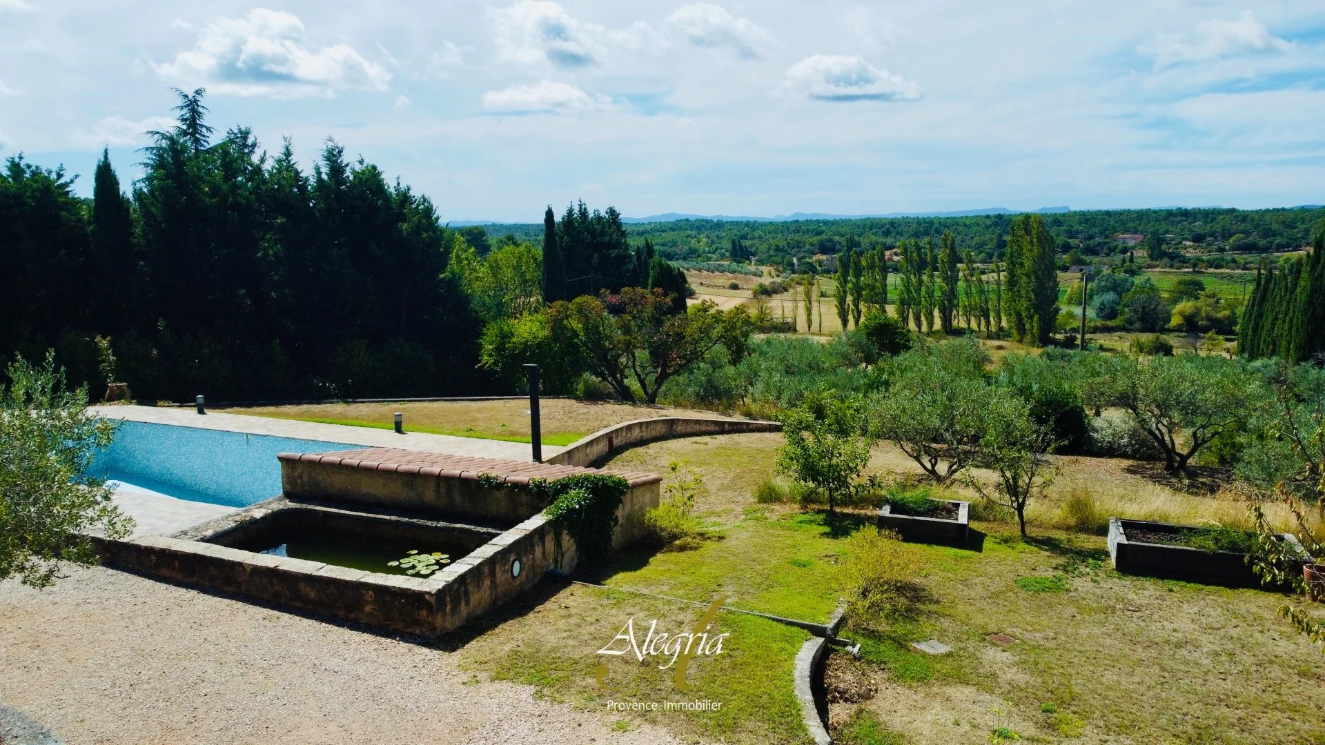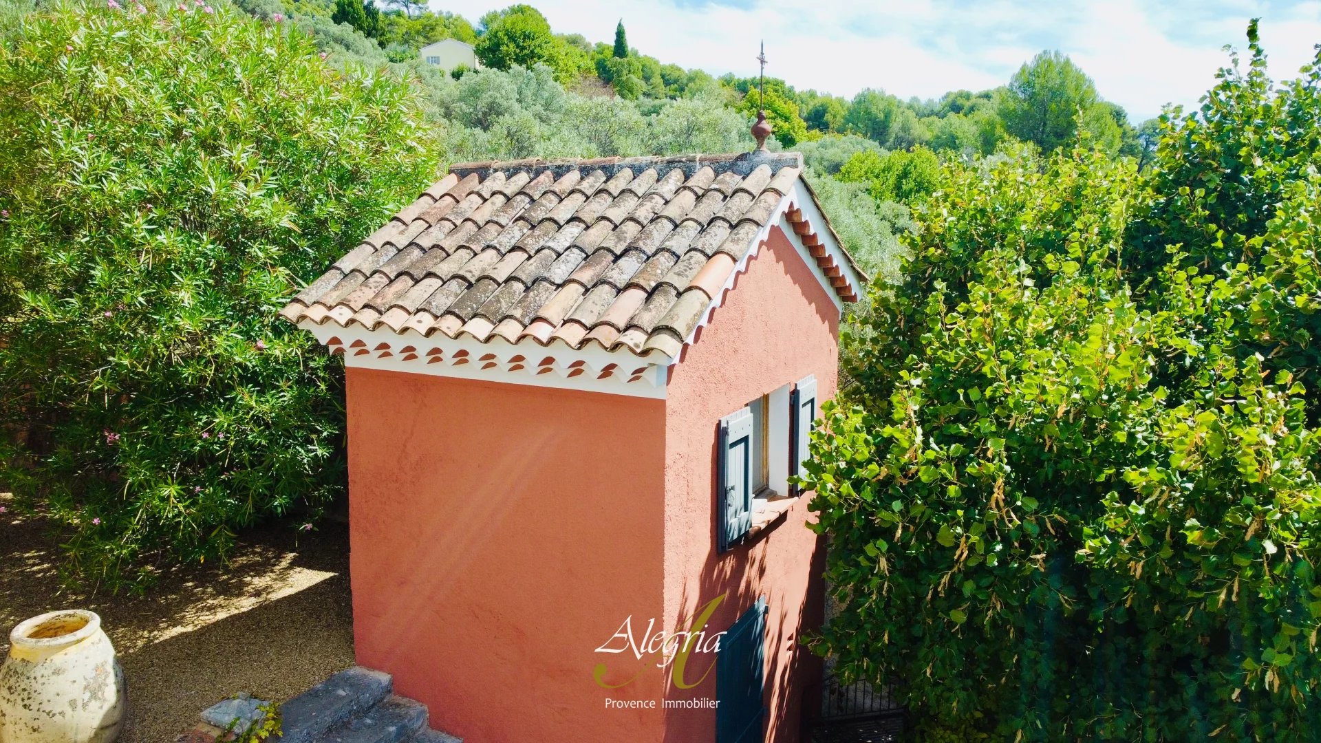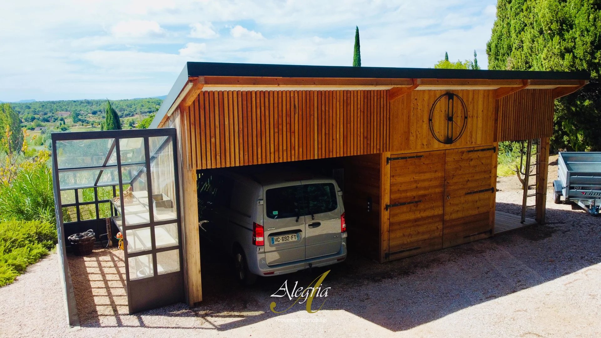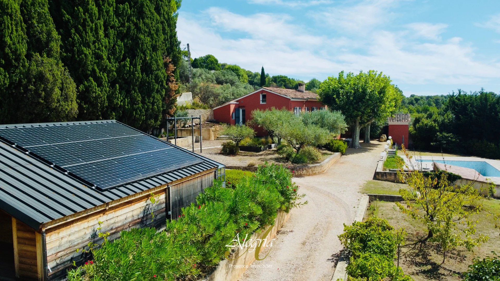 Le terrain de près de 3 000 m², superbement arboré, accueille une piscine, deux bassins alimentés par une source naturelle, un atelier en bois douglas de 45 m², un abri voiture, une serre et une ancienne chapelle transformée en atelier. Dix-huit panneaux solaires renforcent son harmonie avec la nature.