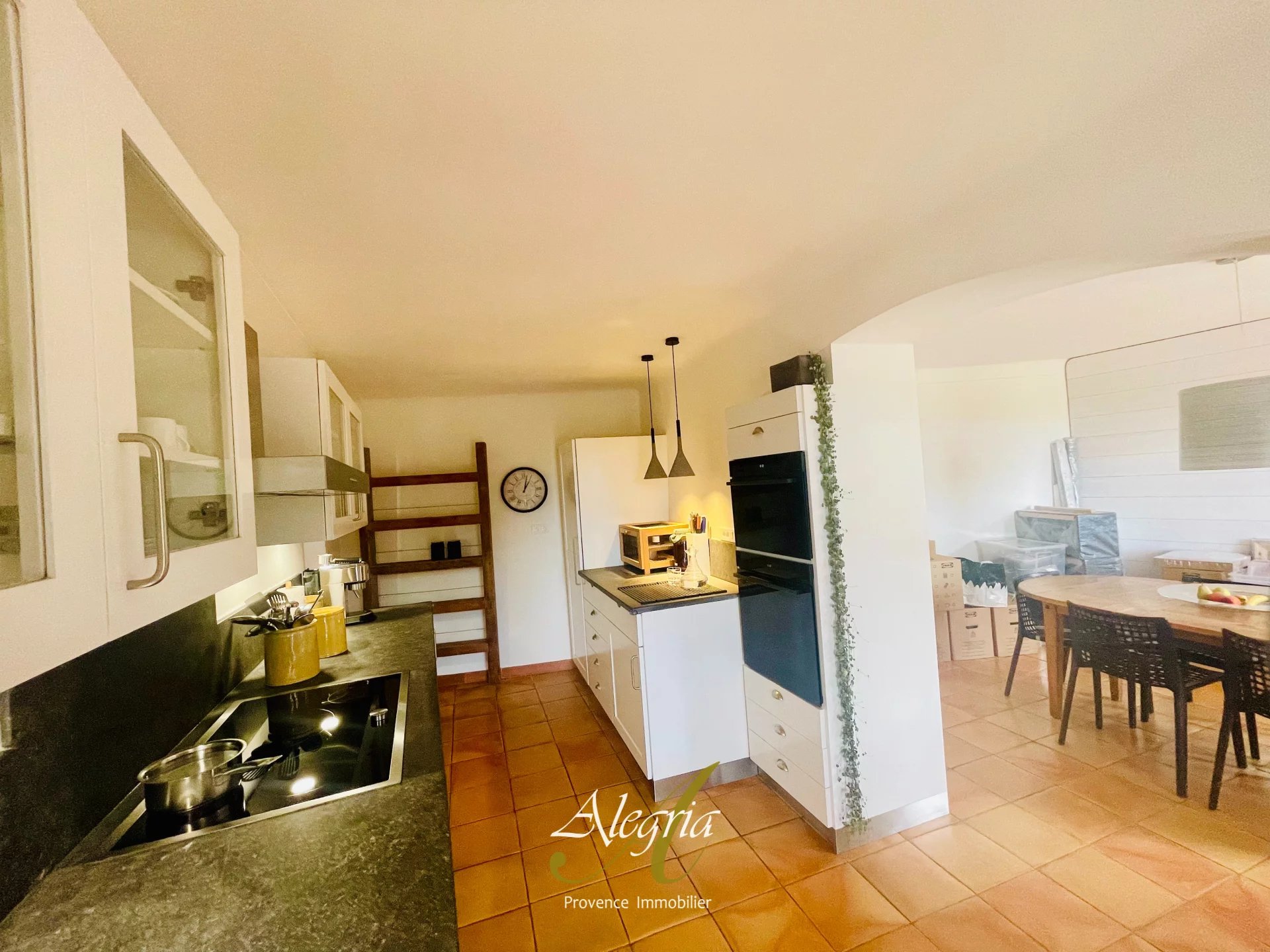 Depuis la terrasse et les pièces de vie, le regard embrasse un panorama grandiose de collines et d’oliveraies sous le ciel azur. Lumineuse et élégante, la bastide séduit par son atmosphère chaleureuse et son authenticité intemporelle.