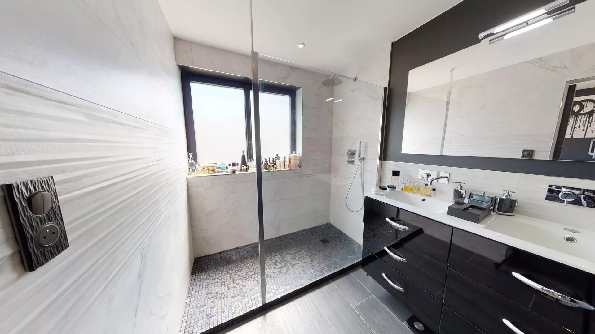 Egalement à cet étage une grande suite parentale de 25m5 avec sa salle d'eau/douche à l'italienne mosaïque et son dressing.