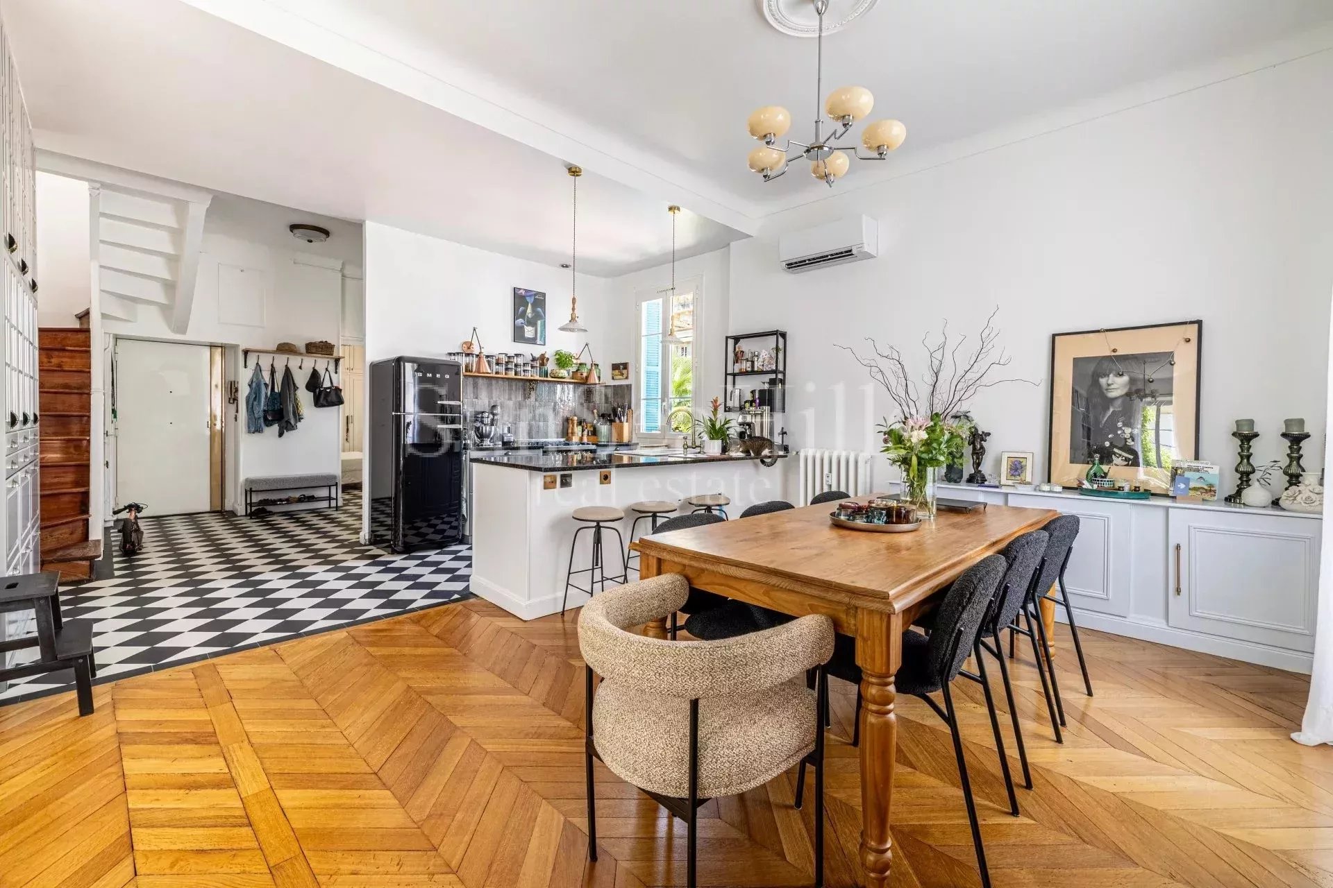 DUPLEX DERNIER ETAGE Situé dans le quartier recherché de la Libération, cet appartement de 96 m² allie charme traditionnel et commodités contemporaines. Avec ses trois pièces spacieuses, dont deux chambres confortables, cet espace est idéal pour ceux qui recherchent à la fois l'élégance et le confort. Double vitrage, accès internet, système d'alarme incendie, interphone et porte sécurisée assurent tranquillité et sécurité. Le salon, baigné de lumière grâce à de grandes fenêtres, offre une atmosphère chaleureuse et accueillante. Le parquet ajoute une touche de raffinement, complétée par un mobilier moderne qui allie esthétisme et fonctionnalité. La cuisine ouverte, équipée de comptoirs modernes et d'appareils de qualité, est parfaite pour recevoir des invités. Chaque détail de cet appartement reflète une attention particulière au confort et à la sécurité. Proche de toutes commodités, y compris les transports en commun et les marchés locaux, ce bien exceptionnel est une opportunité rare pour vivre au cœur de Nice tout en profitant d'un cadre de vie luxueux et fonctionnel.