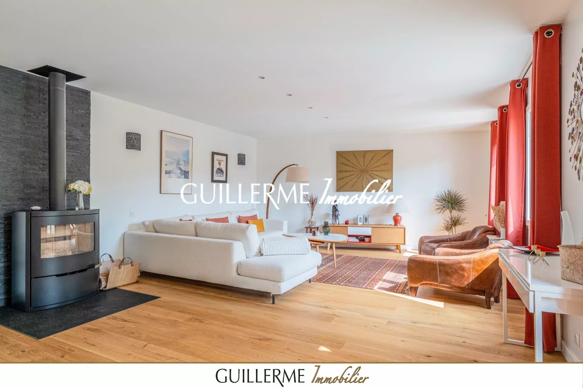 - 1 séjour chaleureux de 47 m²avec parquet, poêle à bois et accès direct à la terrasse côté jardin
