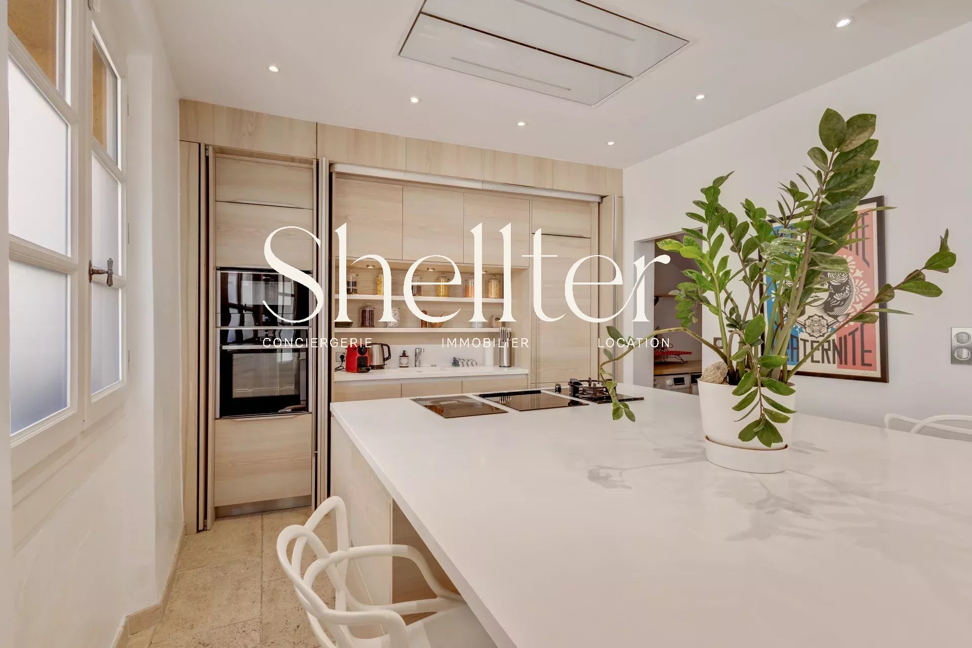 Rez-de-chaussée : une belle pièce de vie lumineuse avec cuisine ouverte entièrement équipée, ainsi qu’une buanderie discrète.