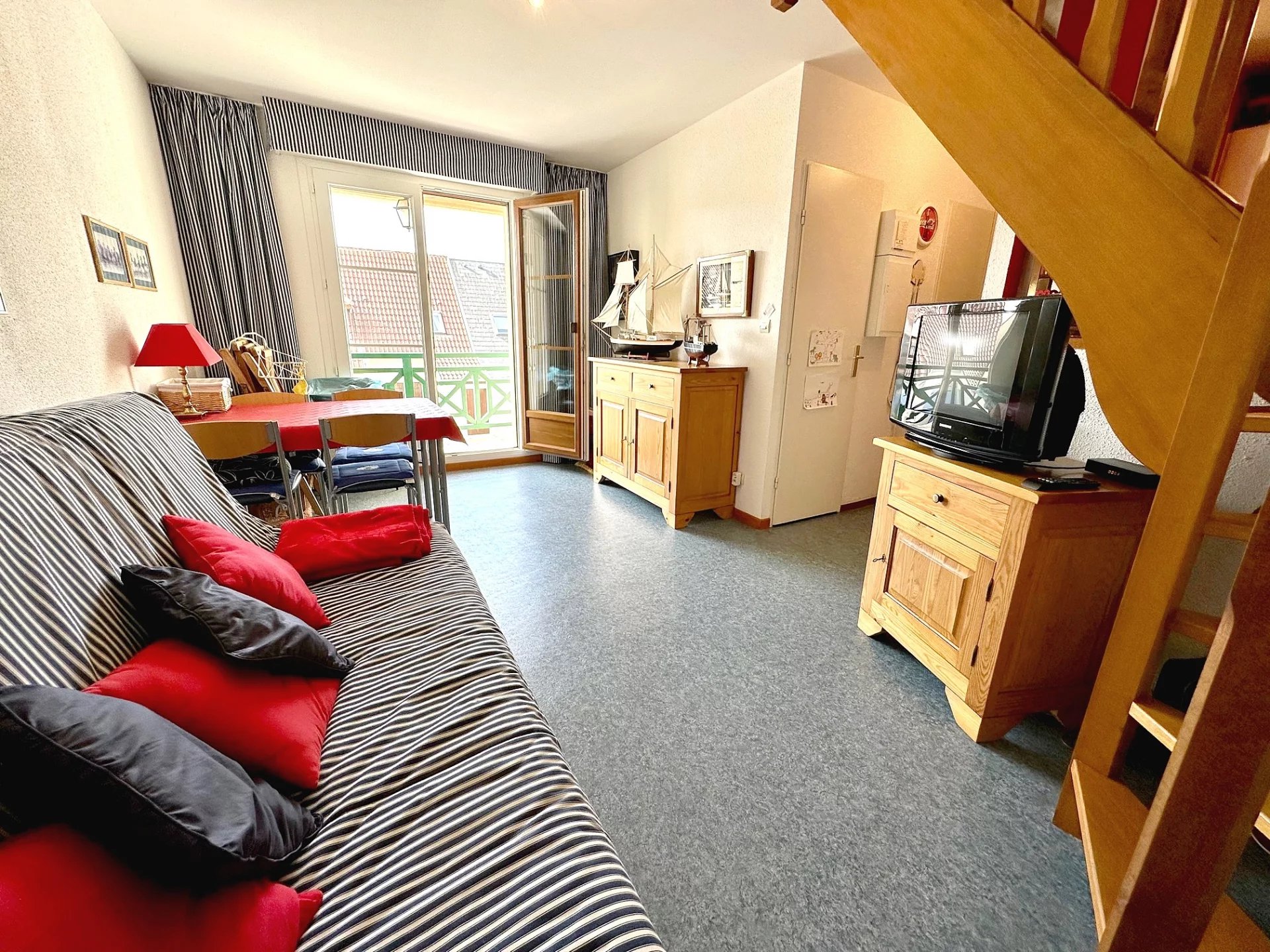 A 900 METRES DES PLAGES - Appartement en duplex, au 1er étage d'une résidence entretenue et sécurisée… D'une surface de 45 m² comprenant : une entrée, un séjour, une cuisine ouverte équipée et aménagée, un balcon d'environ 5m² exposé Ouest, 2 chambres, une salle de bains, toilettes indépendants… Une place de parking privative…