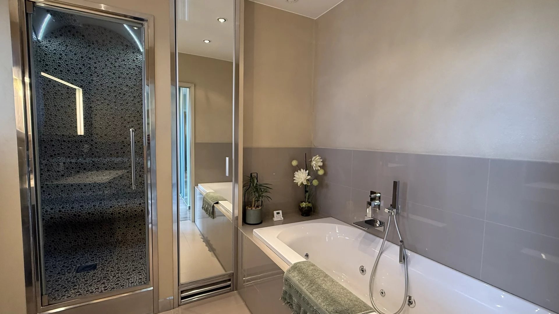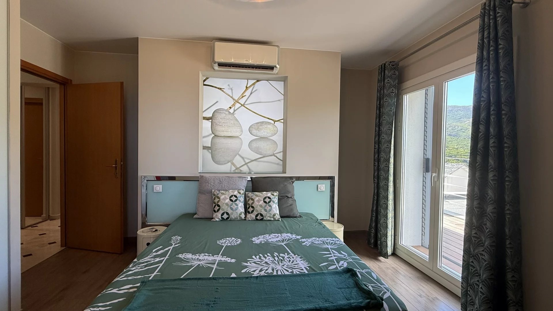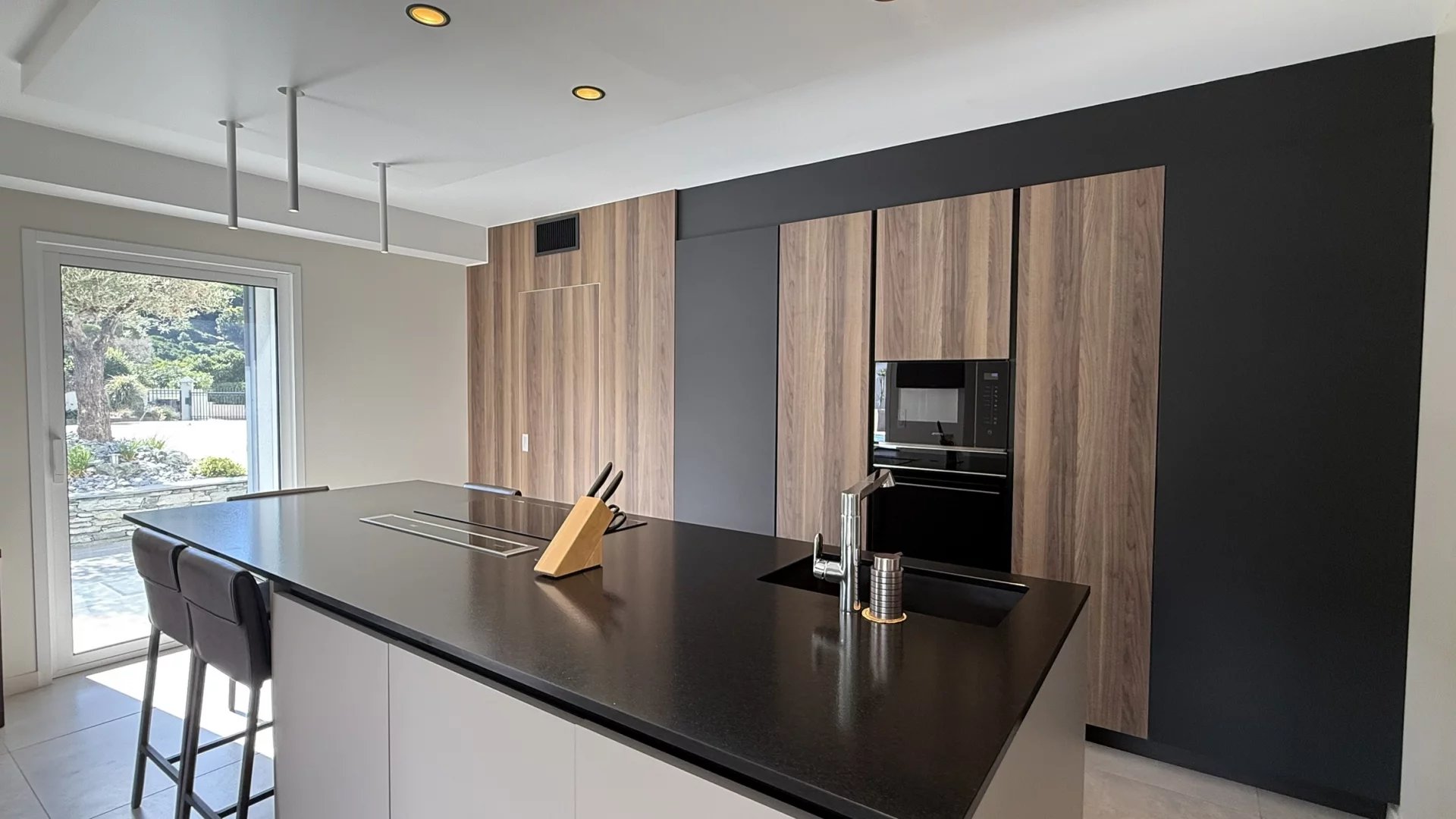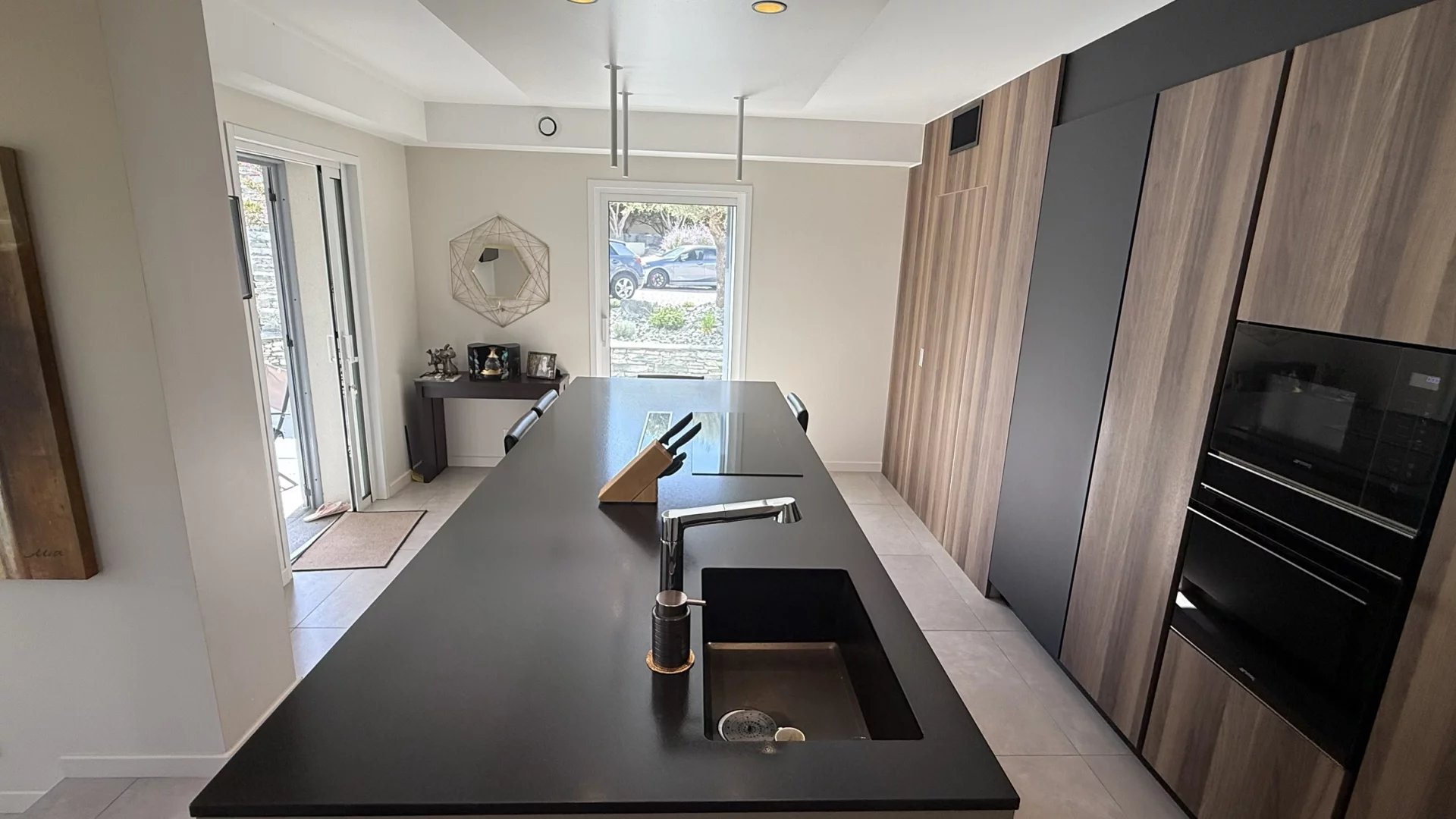 Elle se compose d'un hall d'entrée, d'une spacieuse pièce de vie avec cheminée et son accès terrasse vue mer et montagne, une cuisine moderne équipée et son arrière cuisine, un coin repas et son accès terrasse côté piscine, une chambre parentale avec dressing salle de douche et sa terrasse vue mer, un toilette à l’entrée, une buanderie agencée, à l'étage une chambre parentale avec salle de bain et douche vue mer et montagne, deux autres chambres avec terrasse vue mer et montagne, une salle de bain et douche, un toilette.