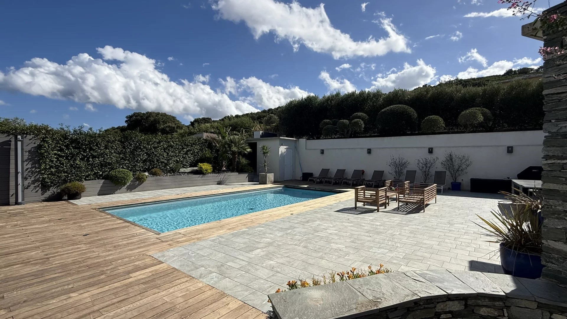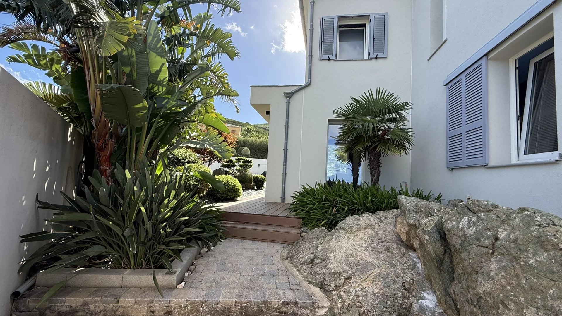 L’agence vous propose une très belle villa soignée, sa vue mer et montagne, ses espaces extérieurs, ses terrasses, sa piscine et son parc paysagé.