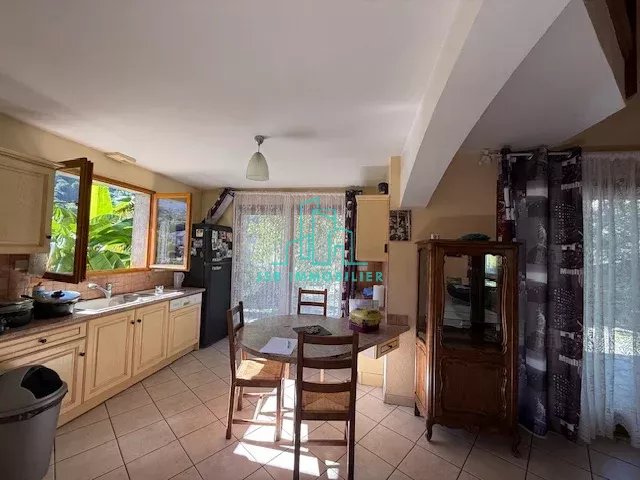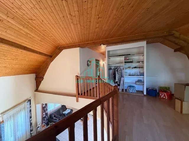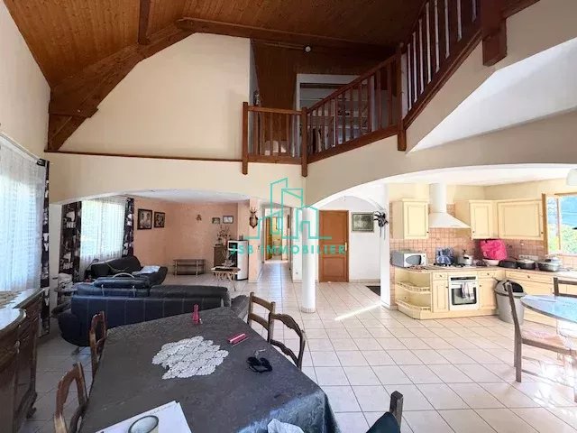 Maison individuelle exposée sud avec une magnifique vue , fonctionnelle et lumineuse. Cette maison est composée au 1 er étage d'un hall d'entrée, une cuisine équipée ouverte sur séjour donnant sur une terrasse et un terrain de 1254m², une salle d'eau, un WC séparé, deux chambres, salle de bains . A l'étage un couloir dessert 3 chambres, un WC, une salle d'eau et une grande mezzanine avec balcon. Au sous-sol un garage avec 2 emplacements pour voitures, un atelier, une buanderie chaufferie ainsi qu'une cave. Cette maison dispose d'un système de chauffage géothermie, d'une cour avec un terrain arboré