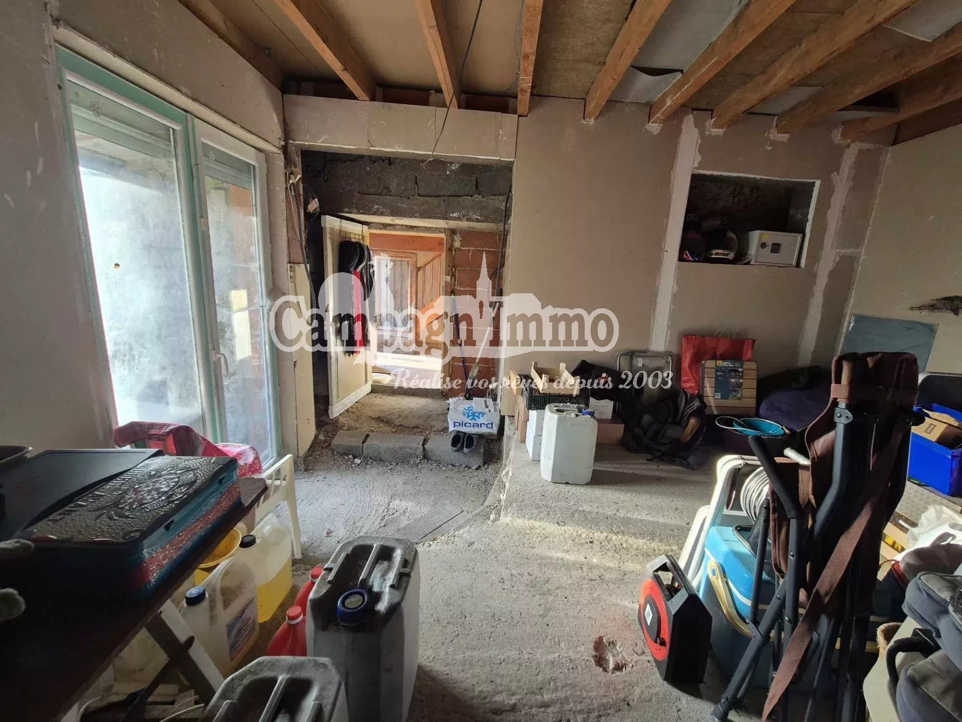 Partie habitable d'environ 100m²: cuisine, salon, 3ch, une salle d'eau, une salle de bains.