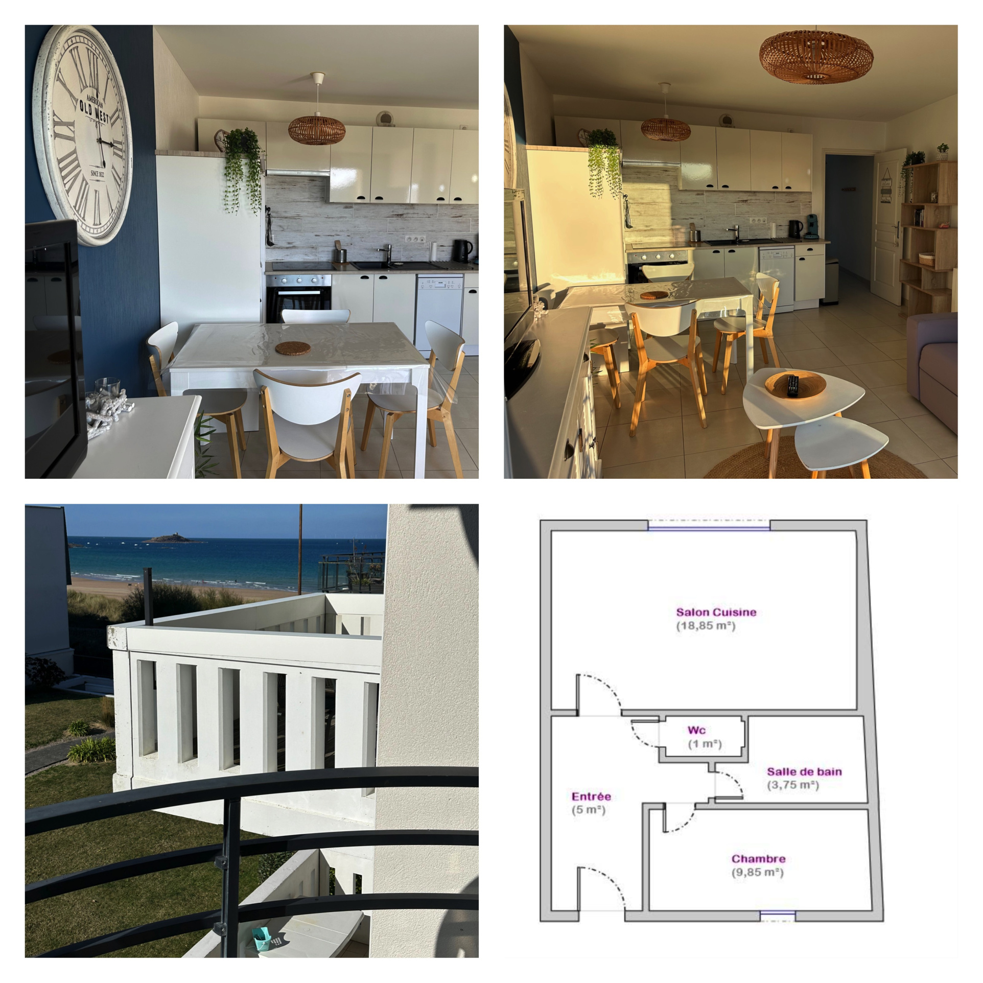 appartement comprenant une entrée, un salon séjour ouvrant sur un balcon avec vue sur mer, cuisine aménagée et équipée ouverte, une chambre avec placards, une salle de bains, wc indépendant
