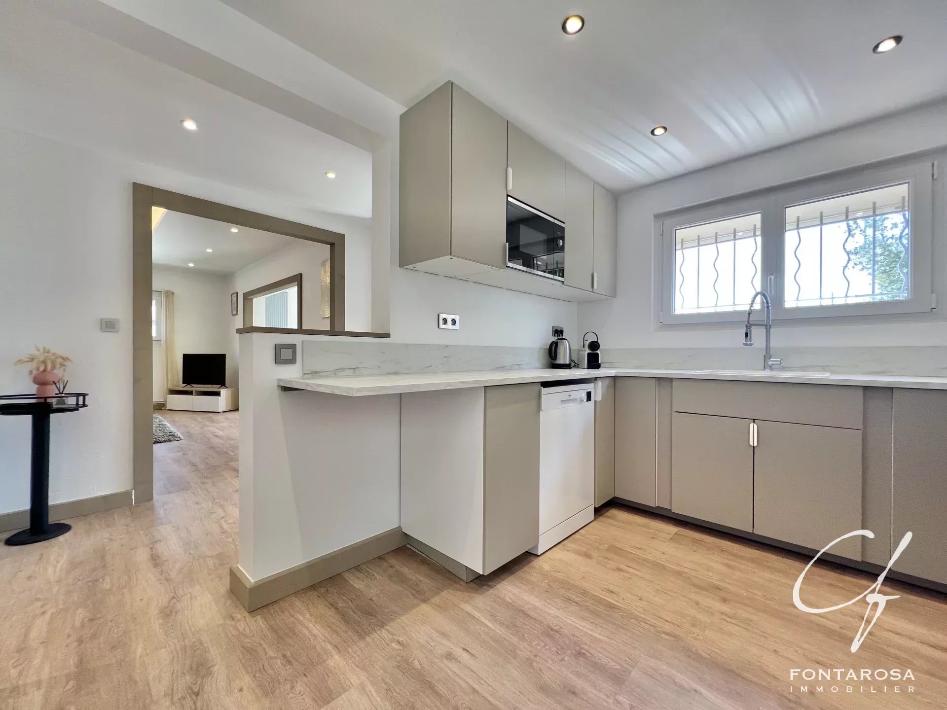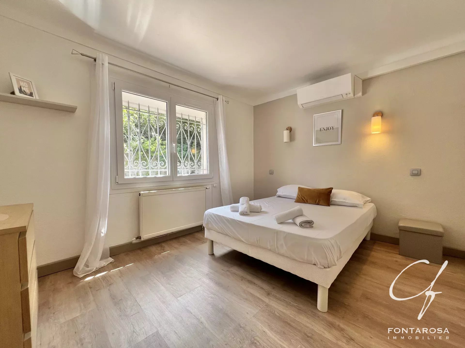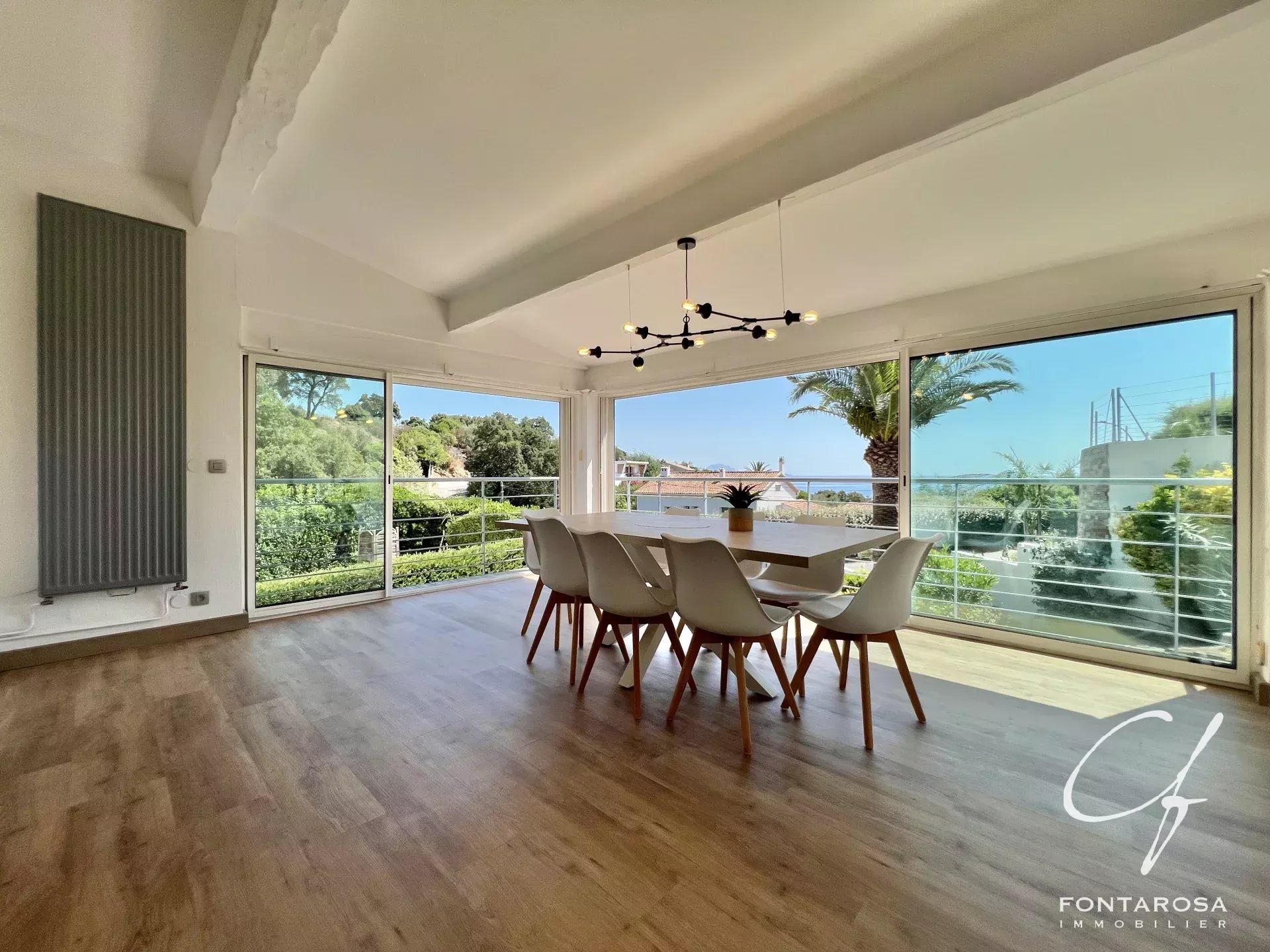 LES ISSAMBRES - Scoprite questa villa di 170 m2 ristrutturata con gusto, situata a pochi passi dal mare e dalle spiagge, in un ambiente tranquillo e verdeggiante con una bella vista sul mare.
