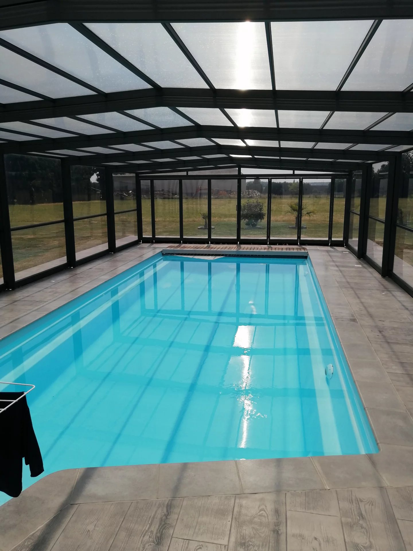 Piscine chauffée et couverte (10x4m) avec accès direct depuis la maison.