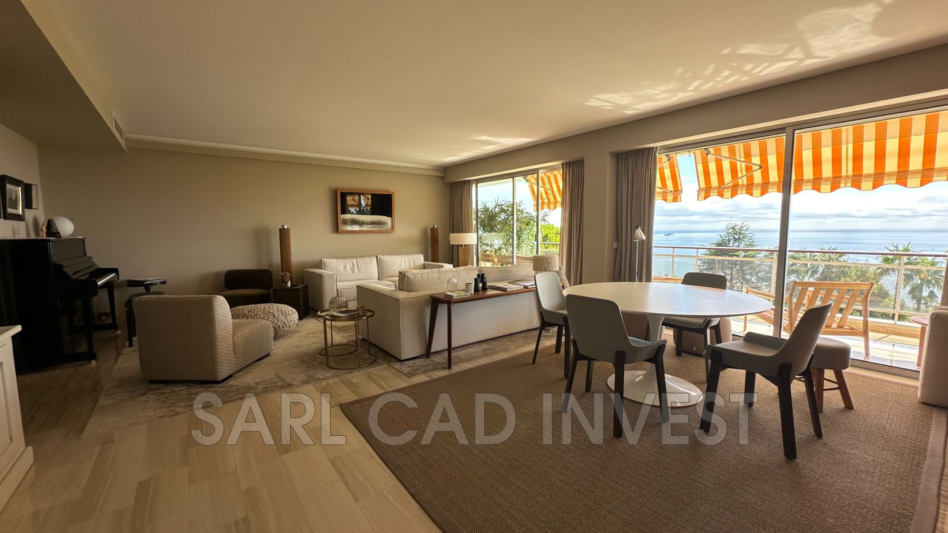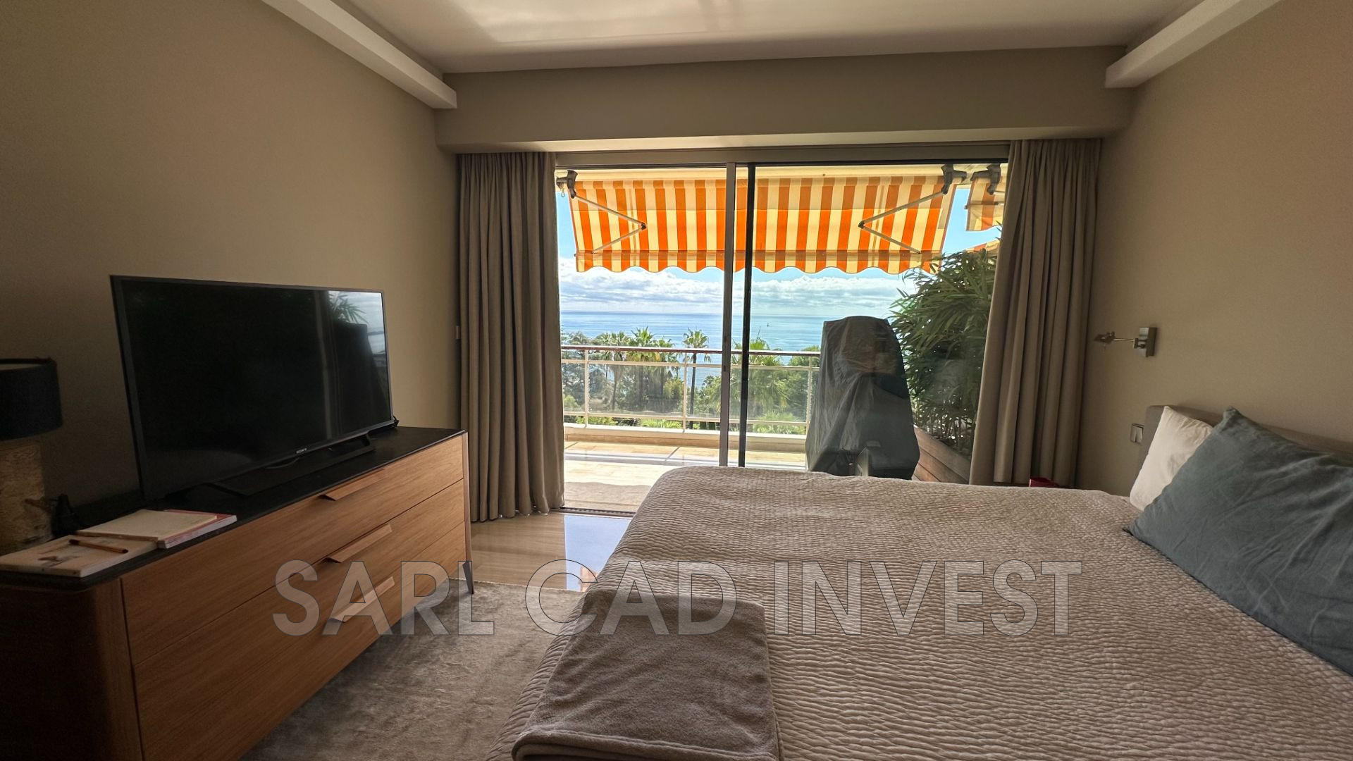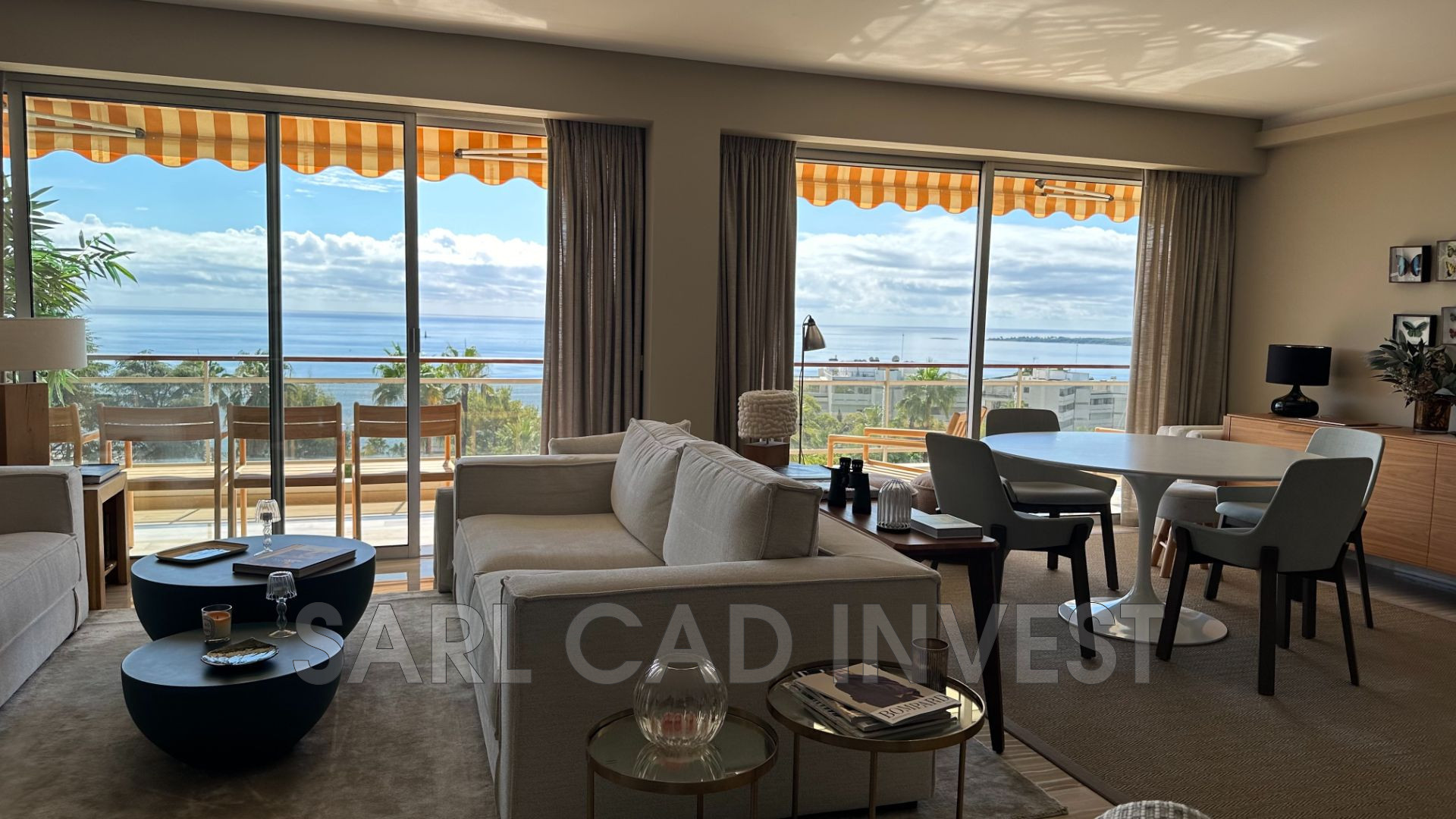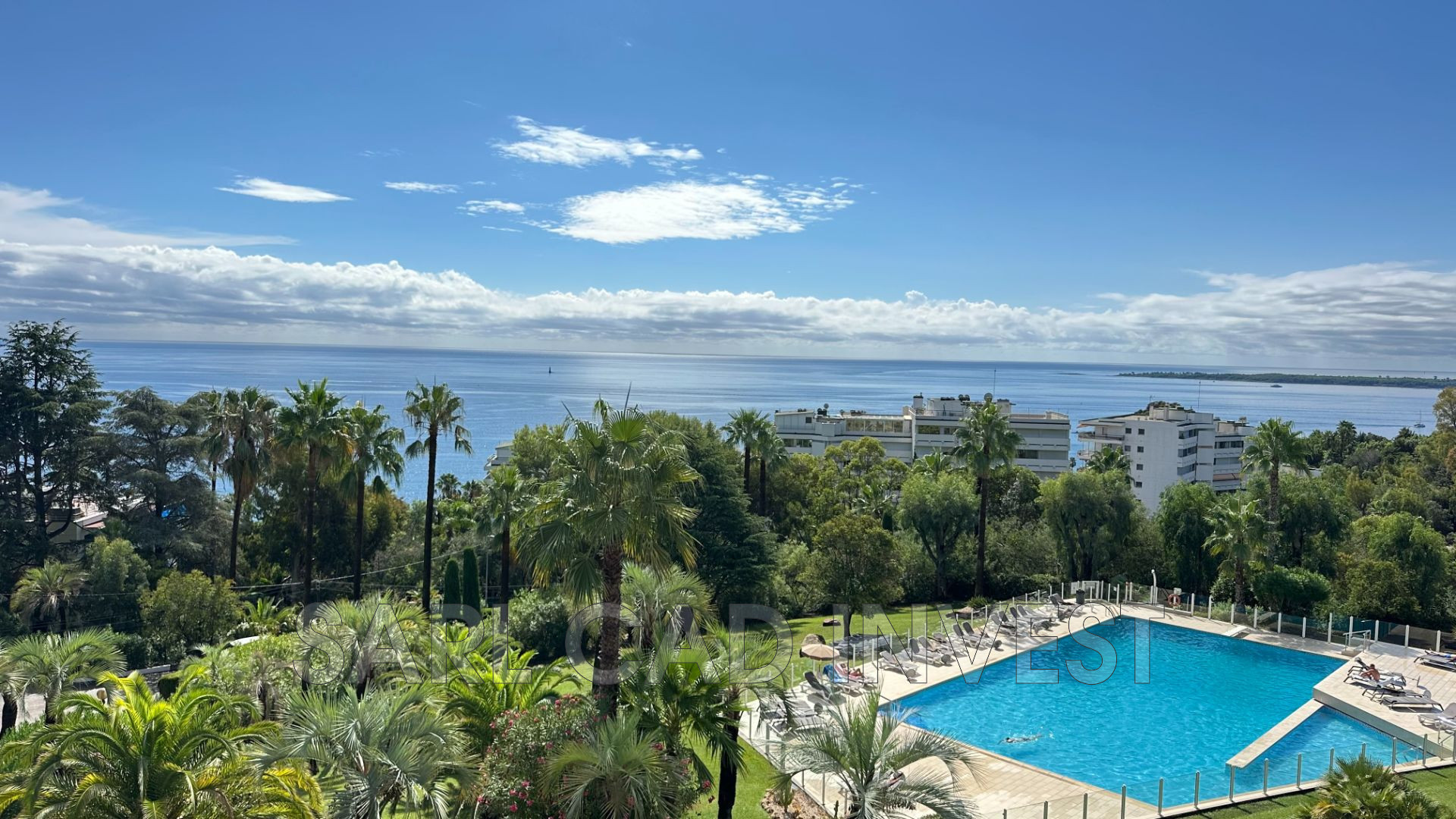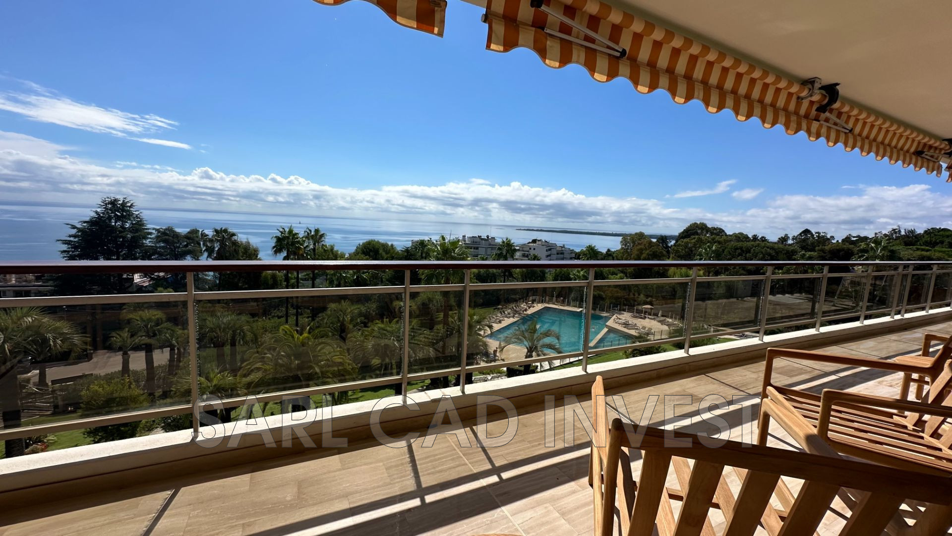 Appartement étage élevé, grande terrasse de 42m2 expo sud avec une vue panoramique sur la mer et sur les iles de Lérins.