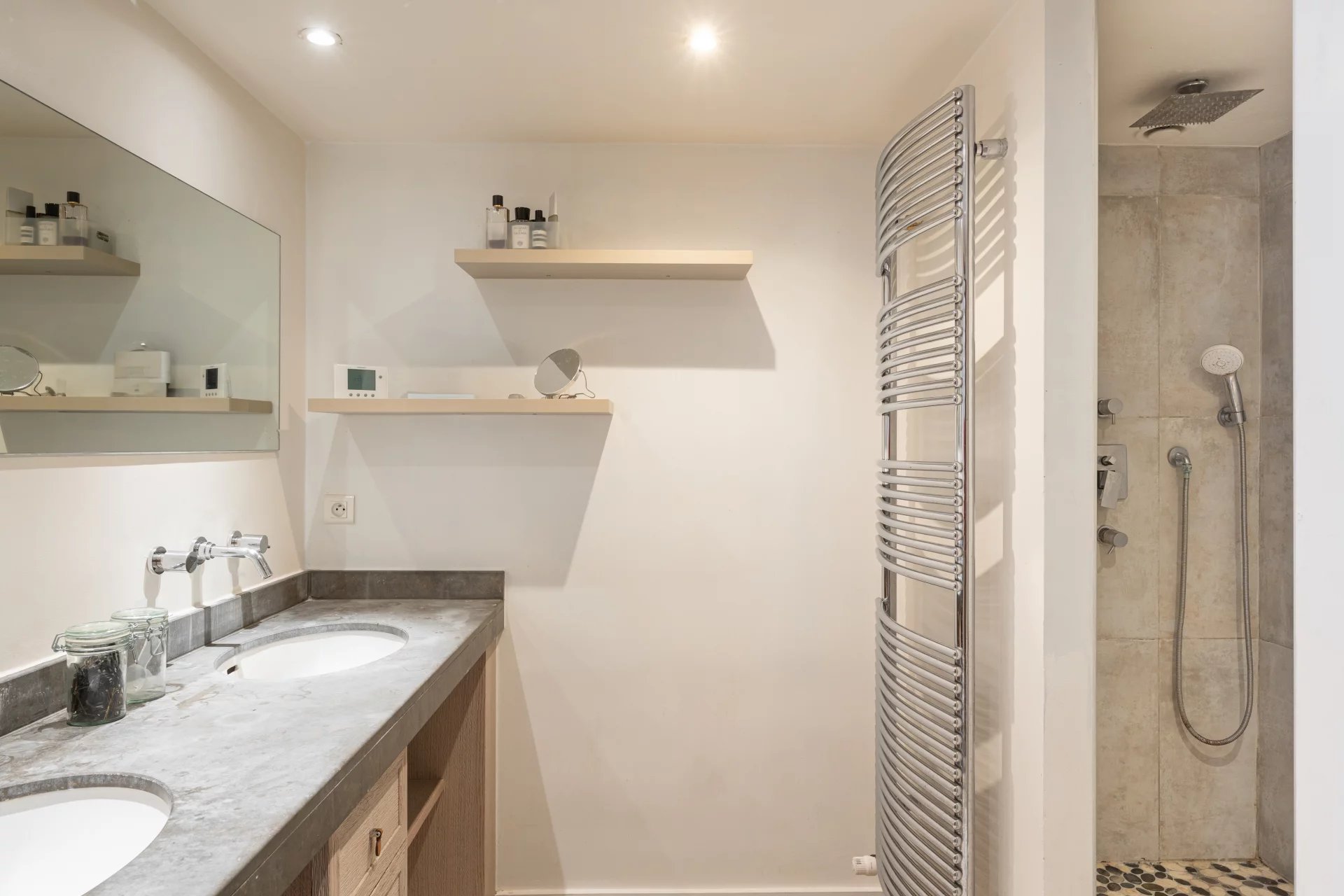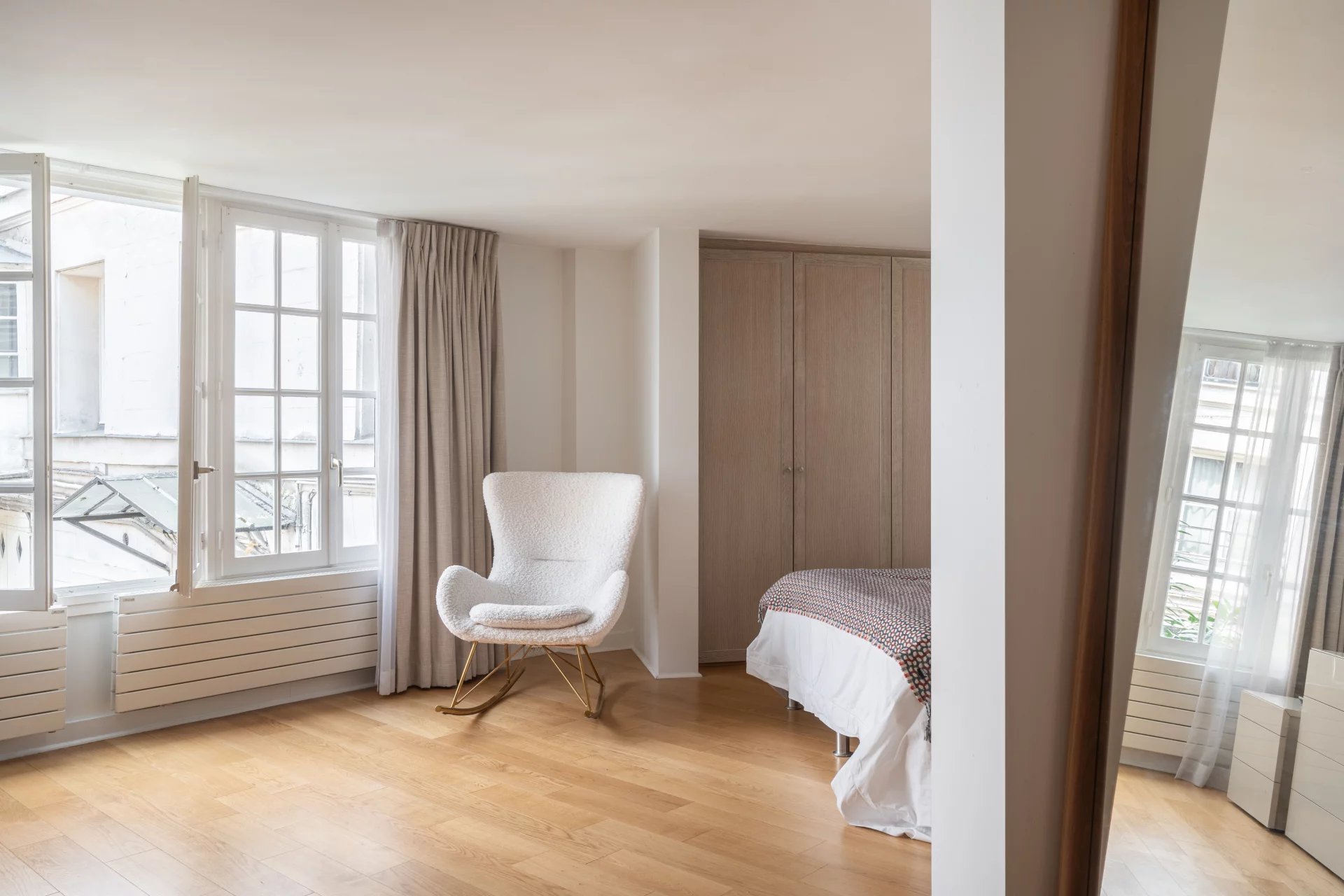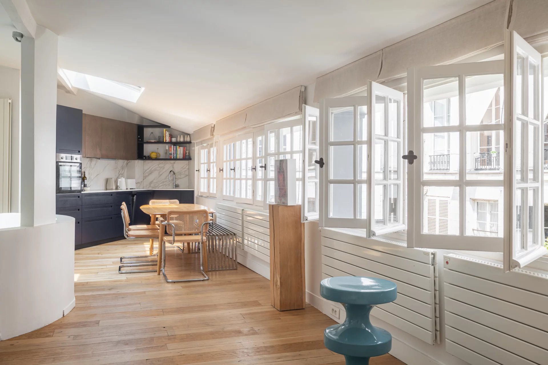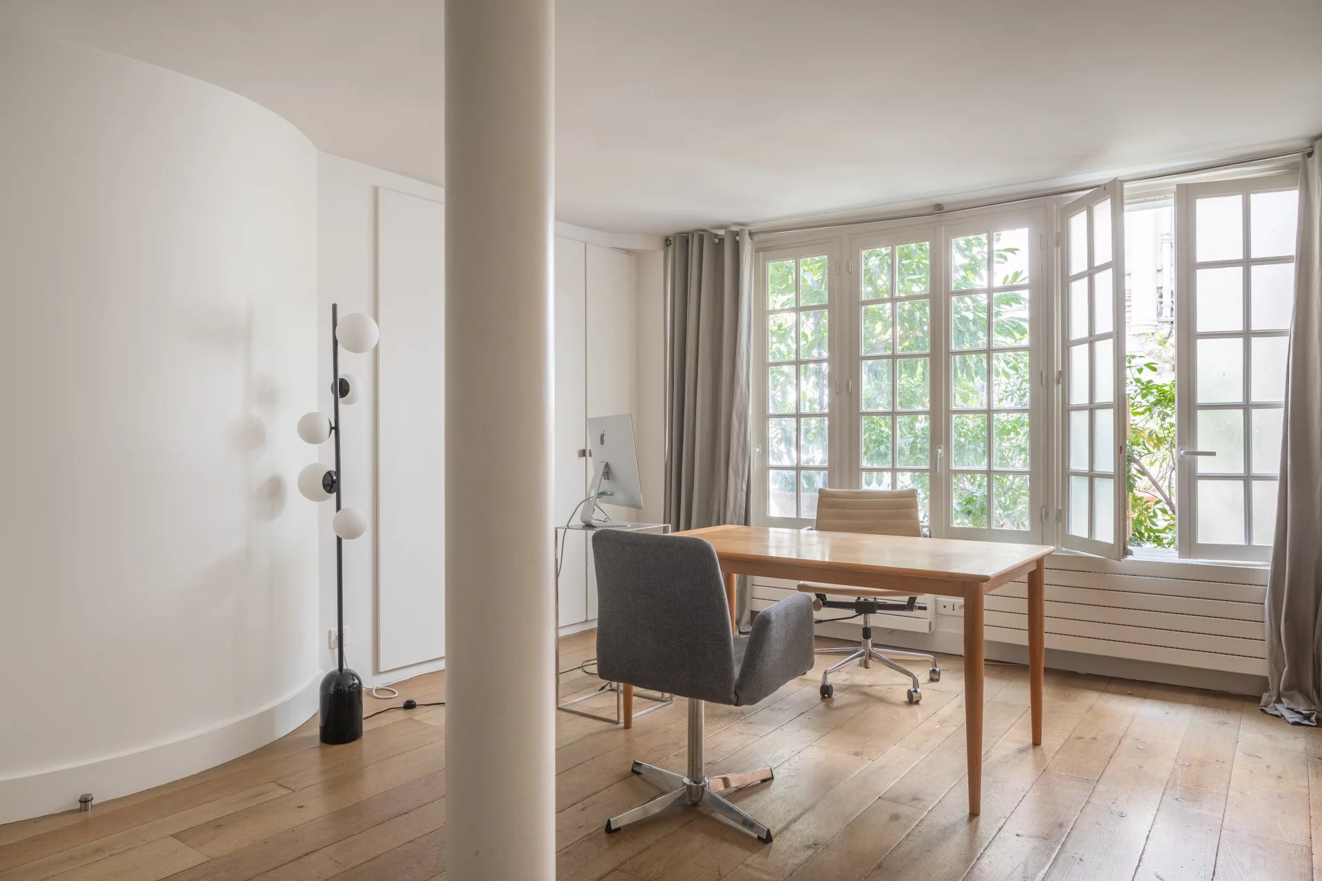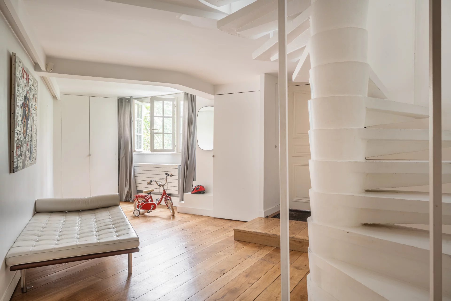 Au coeur du prisé Saint-Germain-des-Prés, entre la Seine et le boulevard Saint Germain et à l'abri des regards, rare maison au calme sur cour. Elle se présente ainsi : Au rez-de-chaussée: - une grande entrée - des toilettes invités - une chambre avec salle de bain et toilettes Au premier étage : - une chambre parentale avec salle de douche et toilettes - une troisième chambre avec salle de douche et toilettes Au dernier étage : - un grand séjour/salle à manger baigné de lumière - une cuisine ouverte Ancien atelier d'artiste, ce bien d'exception à été entièrement rénové avec des matériaux de grande qualité. Bien unique et atypique Ravissante co-propriété Cheminée Travaux récents de qualité