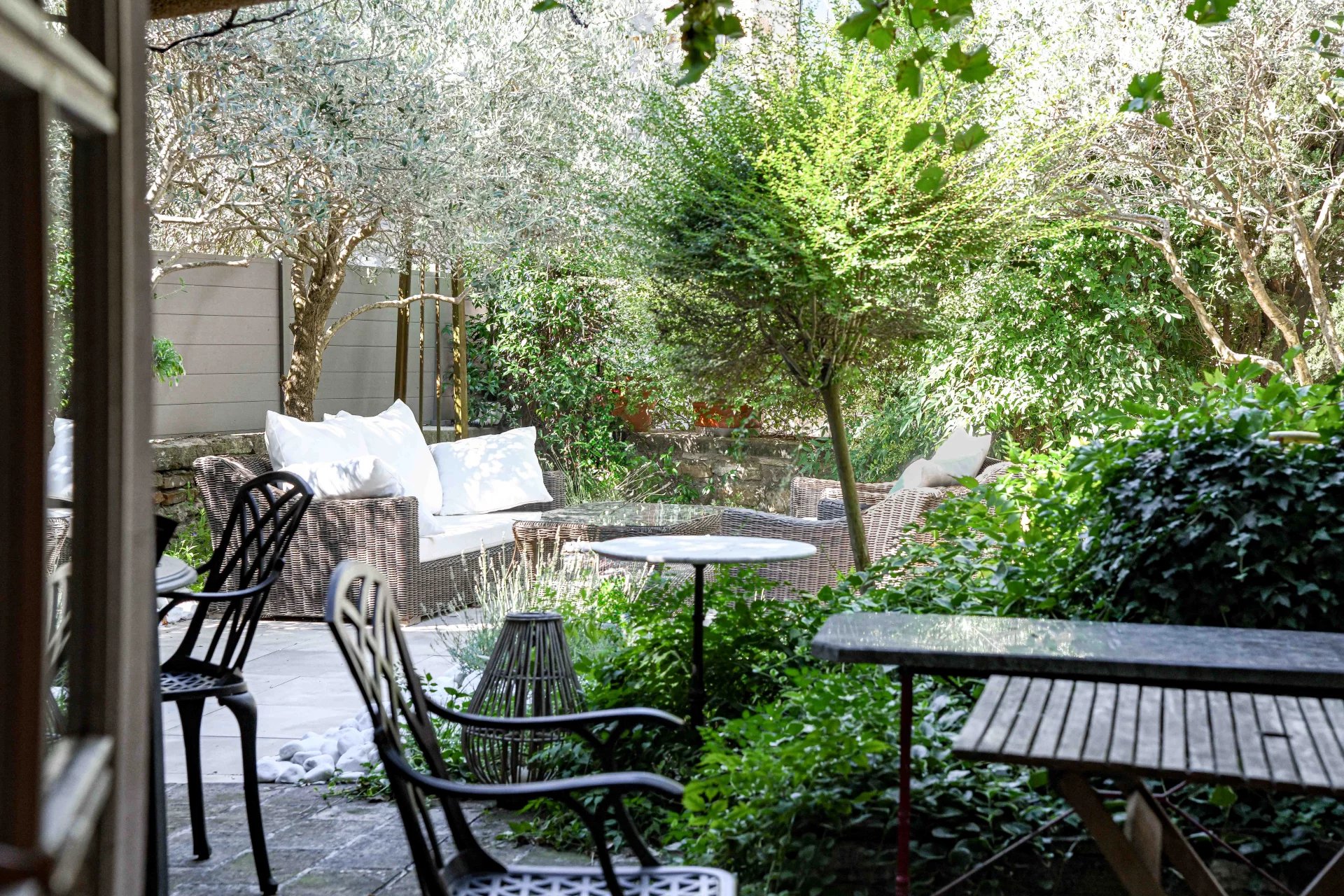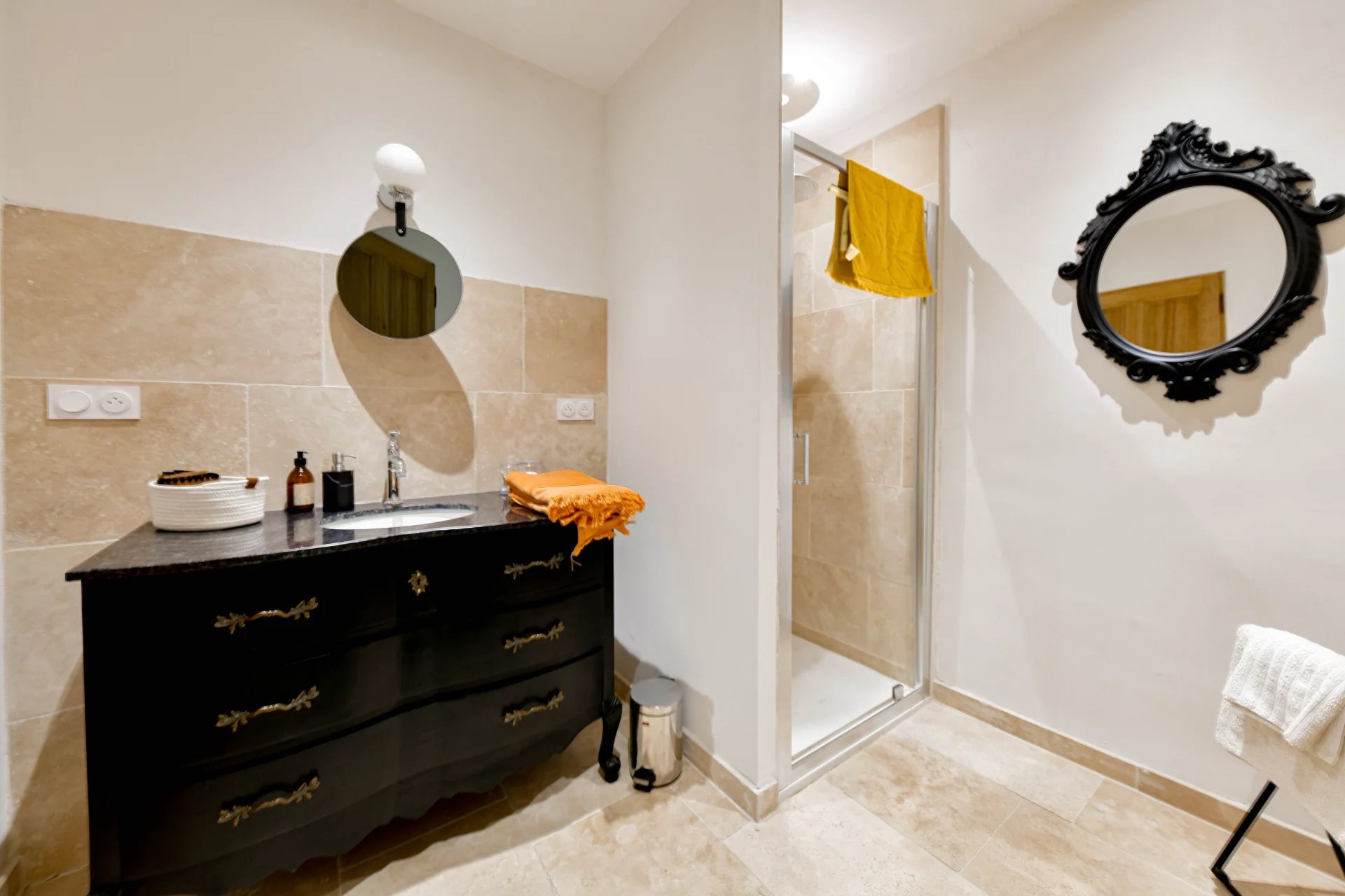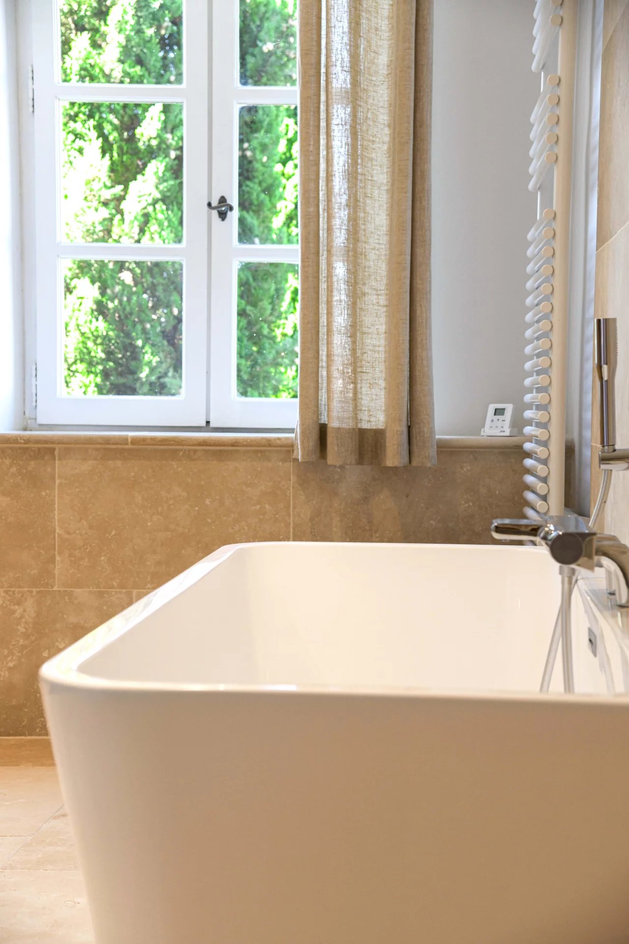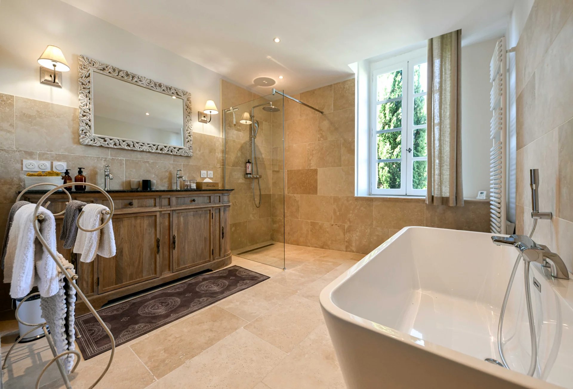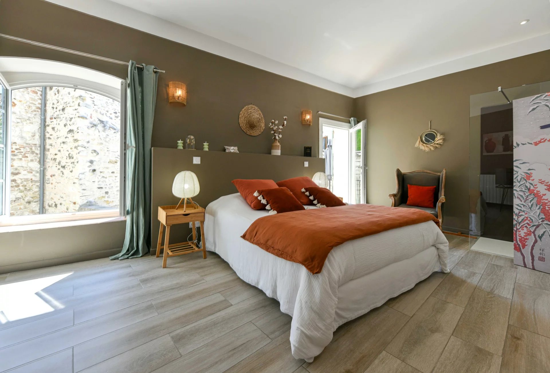 Superbes éléments architecturaux, Restauration de grande qualité Salon/séjour ouvert sur cour et piscine, grande cuisine avec large cellier 4 chambres, 4 salles de bains, grenier aménageable Situation dans un authentique village à 18 kms d’Uzès et 20 min de Nîmes