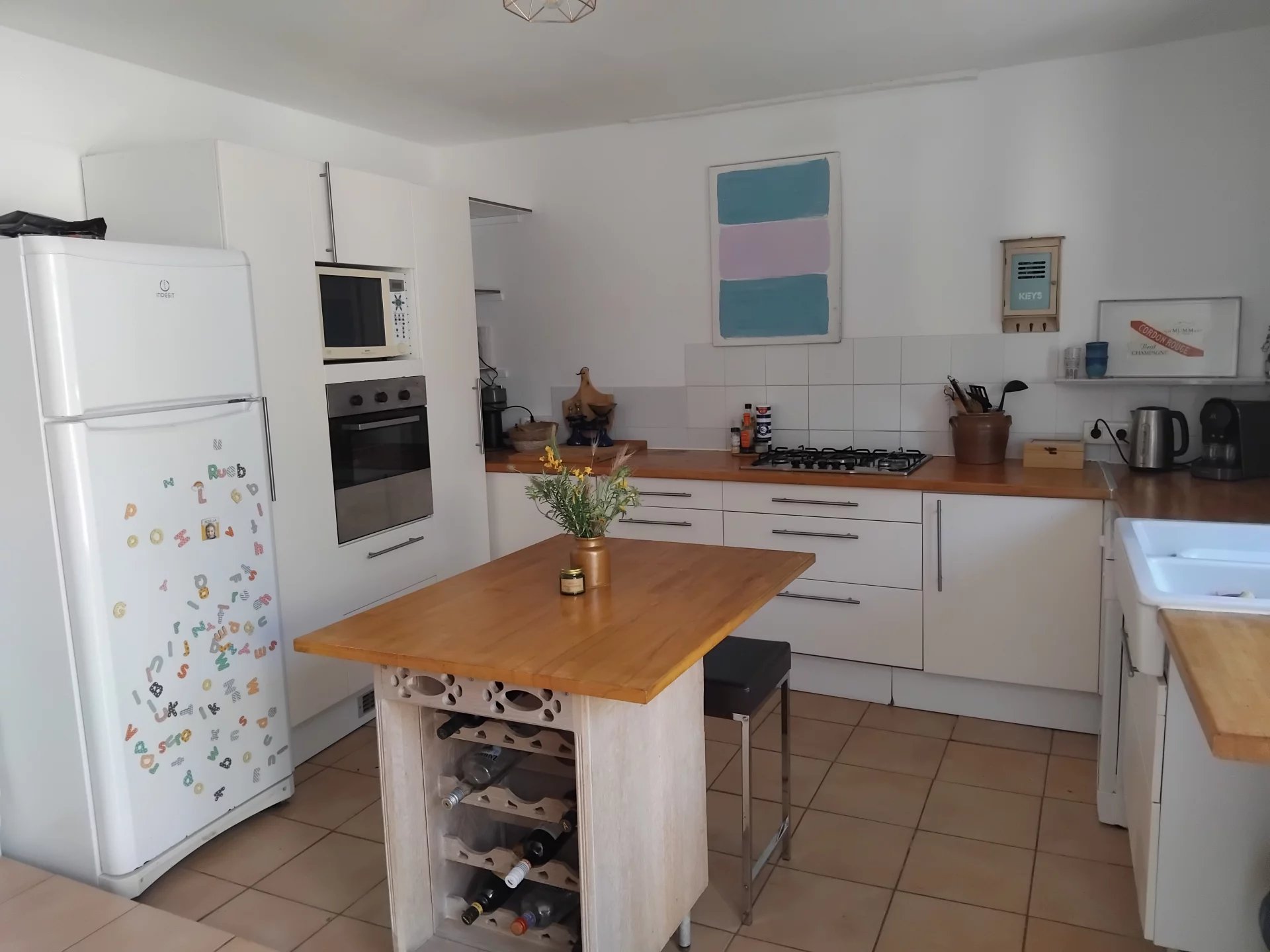Appartement 1 : Accès à l'avant de la propriété (au niveau de la rue), cuisine ouverte équipée et salle de séjour avec poêle à bois ; 2 chambres doubles, chacune avec salle de douche attenante avec WC ; 2 « caves » pour le stockage.