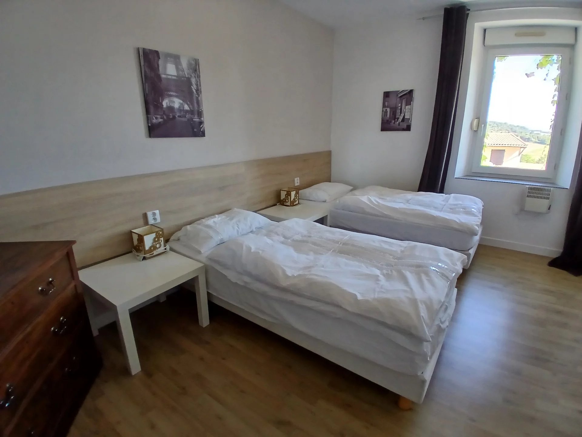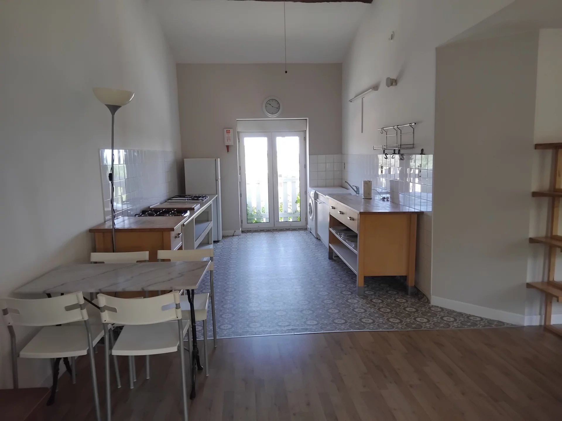 Appartement 3 : Situé à l'arrière, il offre également des vues et un accès aux terrasses et aux jardins. Ce logement de deux étages comprend une cuisine/salle à manger, un salon avec un poêle à bois et un escalier menant à 3 chambres, 1 salle de douche avec WC.