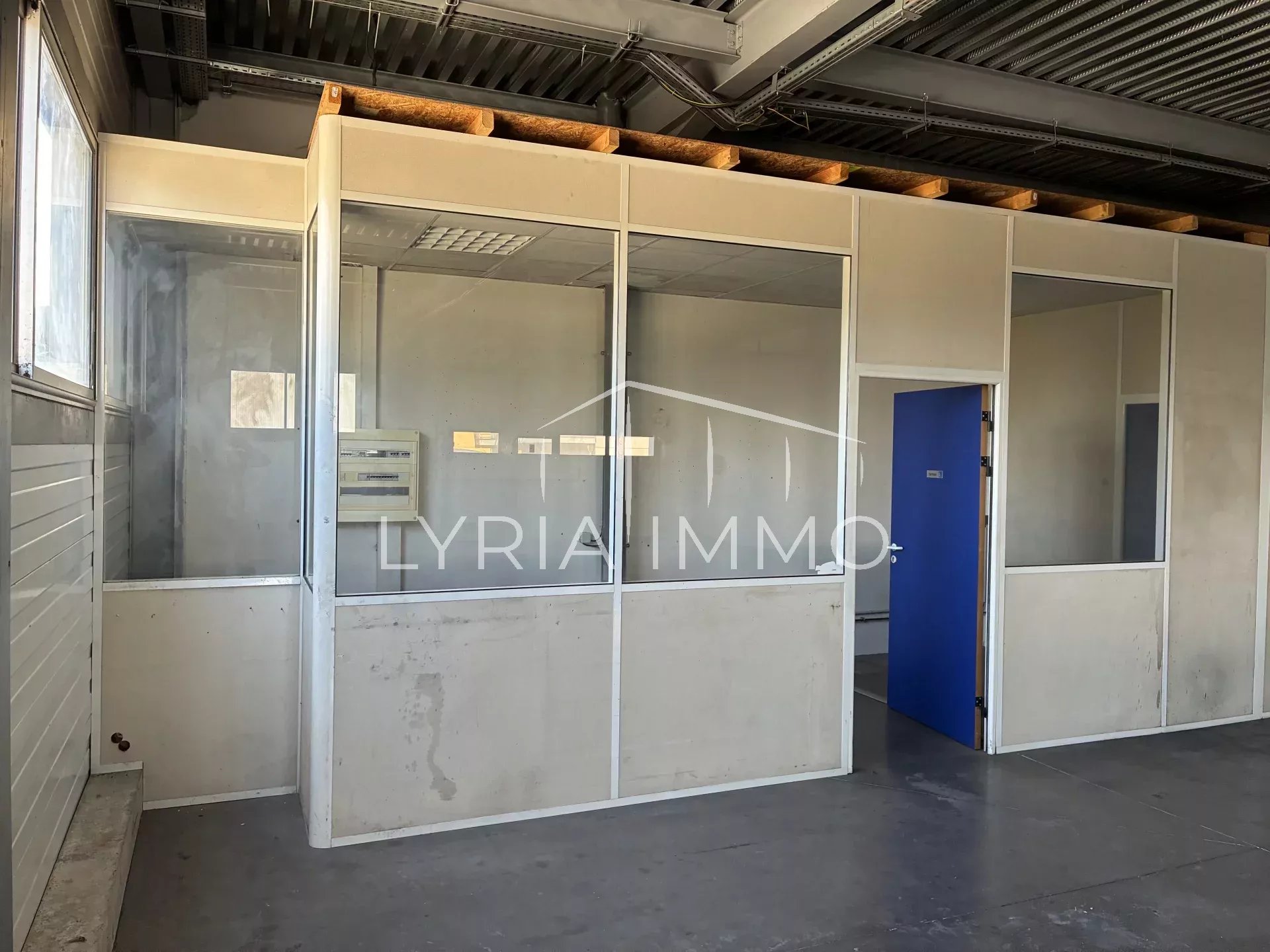 Idéal pour des activités tertiaires, il dispose d'une surface au sol de 135 m2, d'un bloc sanitaire, d'un espace bureau, ainsi qu'une porte sectionnelle motorisée de dimension 3*4m.