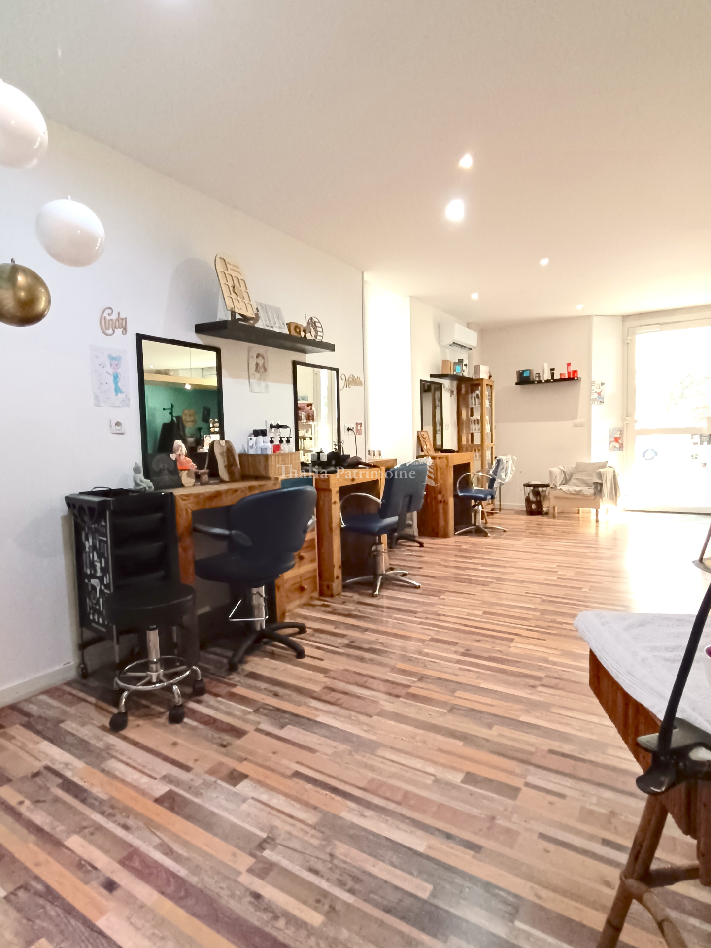 - Un espace dédié à la coiffure (60 m2) qui reçoit actuellement 2 bacs de lavage et 3 postes dédiés à la coupe et aux soins.
