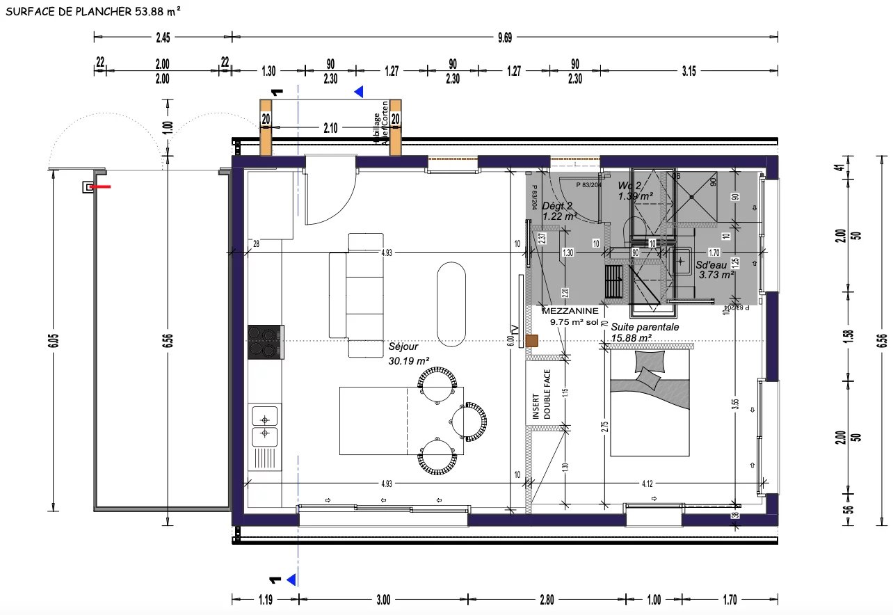 D'une superficie de 50 m2 au sol, et une annexe de 16 m2, vous pourrez vivre dans une maison en ossature bois à taille humaine pour un couple avec jeunes enfants, grâce à la possibilité d'aménager un étage ou 2 mezzanines (selon les goûts de chacun. Belle exposition et calme garantis. Côté fonctionnement, ce terrain est viabilisé (seul le Tout-à-légout reste à brancher, dès que la maison sera construite).