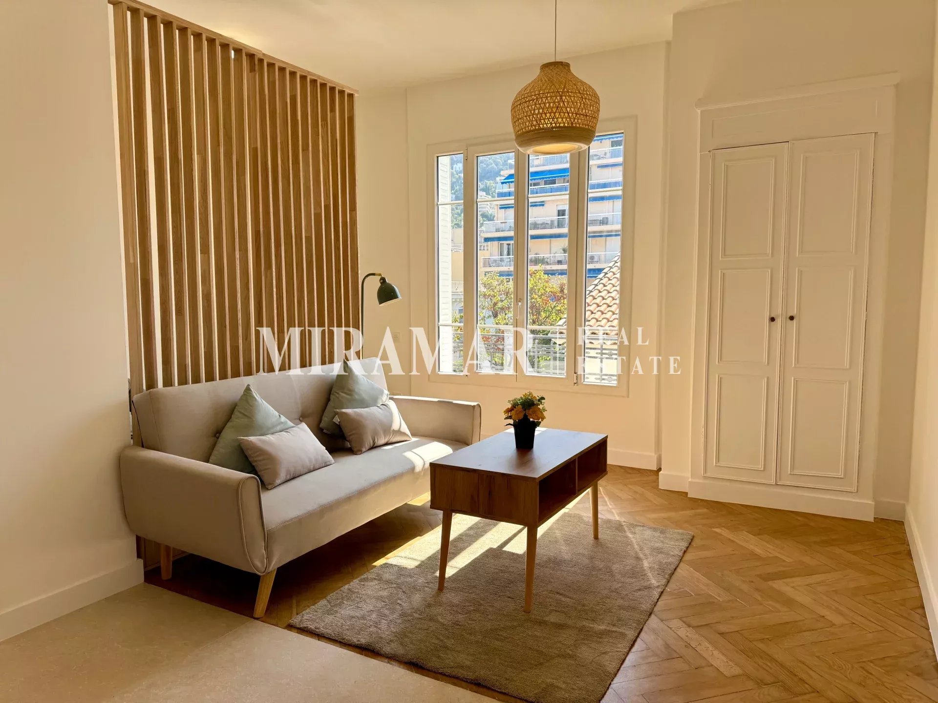 Exclusivité Bas Mont-Boron / Port de Nice. Dans environnement privilégié et calme, au fond d'une impasse, superbe rénovation pour cet appartement type studio avec coin nuit, dans petit immeuble bourgeois à toute proximité du Port. Deuxième et dernier étage sans ascenseur d'un immeuble ancien, cet appartement de 26,59 m² se compose d'une pièce à vivre exposée Est avec une vue sur le Mont-Boron, un coin nuit comprenant un lit 2 places, une cuisine ouverte entièrement équipée, une salle d'eau et des placards. Climatisation et double vitrage. Vendu meublé. Rare.