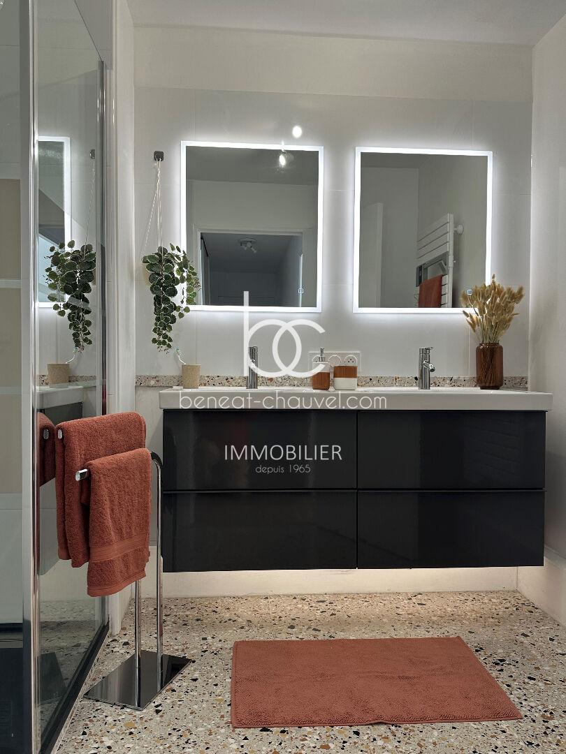COEUR HISTORIQUE DE VANNES APPARTEMENT 3 CHAMBRES AVEC GARAGE Au sein d'une résidence de standing avec ascenseur, PLEIN CENTRE donc à proximité du port, des remparts et du marché, appartement lumineux, situé en rez-de-chaussée surélevé sur esplanade privative, qui vient de bénéficier d'une rénovation totale récente de grande qualité. Il offre un séjour de 27 m² orienté plein sud ouvrant sur une terrasse, une cuisine séparée ainsi que 3 chambres avec de nombreux rangements. Un environnement calme et verdoyant, un garage accessible par ascenseur, un cellier attenant à l'appartement, en font un bien rare et exceptionnel sur Vannes ! Prix FAI : 576 400 euros dont 4.80 % honoraires TTC à la charge de l'acquéreur.