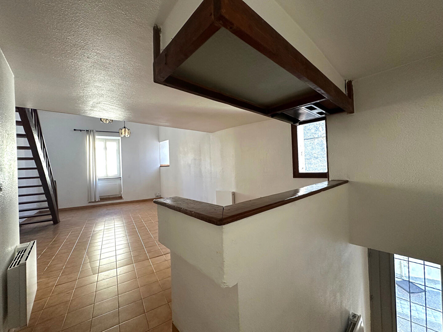 Location maison de village Pennautier 53 m² avec séjour 27 m² et chambre à l'étage - Pennautier, au coeur du village, maison de 53 m² proposée à la location. Le rez-de-chaussée s'ouvre sur une entrée avec escalier menant à un premier étage comprenant un séjour lumineux de 27 m² avec cuisine aménagée et une salle d'eau avec WC. L'étage supérieur dispose d'un palier en surplomb sur le séjour distribuant une chambre et un espace bureau. Hauteur sous plafond offrant volume et clarté. Commerces essentiels accessibles à pied, tels que boulangerie, tabac et pharmacie. Lignes de bus urbaines de Carcassonne desservant le village. Logement fonctionnel, adapté pour une personne seule ou un couple.
