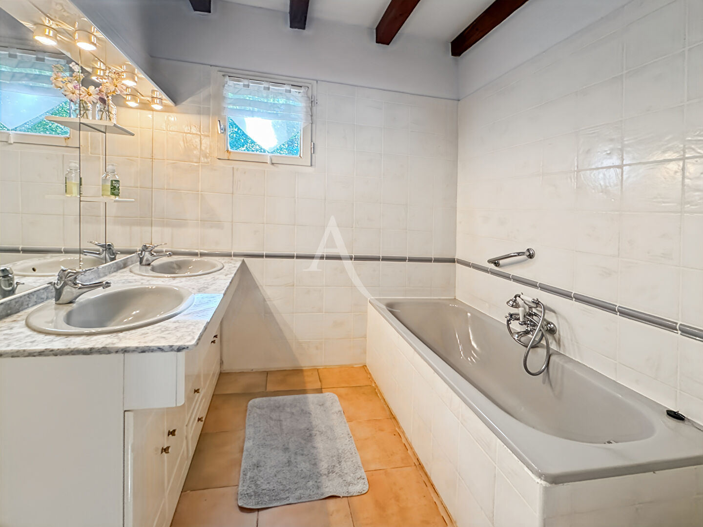 Cette charmante maison de 110 m² offre de beaux volumes et un agencement fonctionnel. Elle se compose d'une entrée par véranda, d'une spacieuse pièce de vie regroupant cuisine ouverte, salon et salle à manger, de trois chambres, dont deux situées en rez-de-chaussée, d'une salle de bain avec baignoire, double vasque et WC, d'une salle d'eau avec douche, double vasque et WC. A l'étage, une mezzanine lumineuse pourra faire office de chambre d'appoint ou de bureau selon vos besoins. L'extérieur n'est pas en reste avec une piscine entièrement refaite à neuf (10 x 5 m), un double garage, un local technique et un jardin clos, sans vis-à-vis, idéal pour profiter des beaux jours en toute intimité. Double Vitrage Chauffage Centrale et Insert A NE PAS RATER
