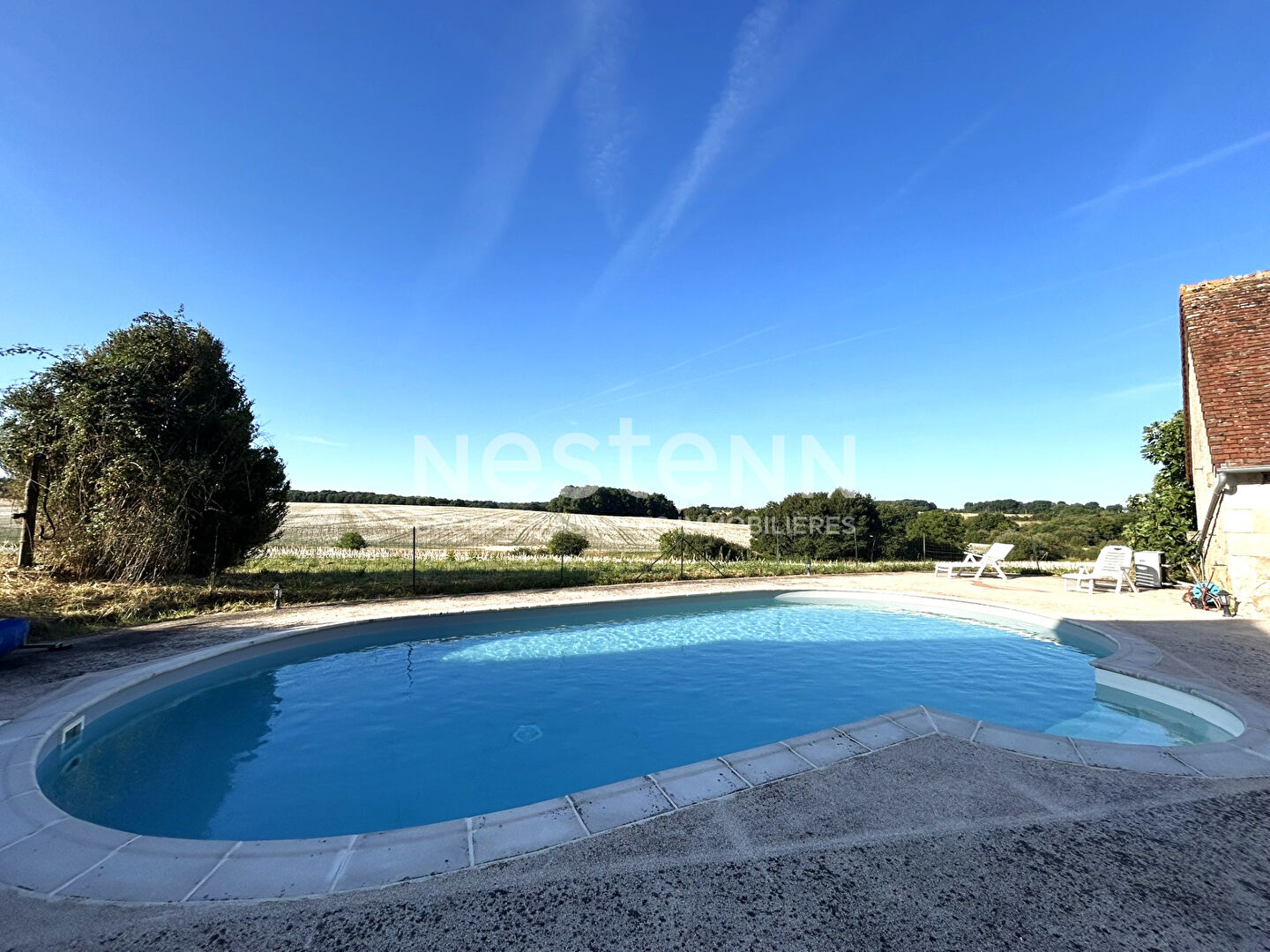 Venez découvrir sur la commune de Baudres, entre Valençay et Levroux, située dans un environnement paisible avec vue imprenable sur les champs, cette longère d'environ 152 m² habitables saura vous séduire par son authenticité, ses nombreuses dépendances et son beau potentiel. La maison se compose d'une cuisine, un séjour de 31m² environ avec sa cheminée, une arrière cuisine, un couloir menant à deux chambres, une salle de bains, un WC. A l'étage, un palier desservant 3 chambres allant de 9 à 27m², une salle d'eau, un WC. Au niveau des extérieurs vous profiterez d'un terrain total d'environ 2,5 hectares avec une partie en fermage en face de la maison, une partie boisée d'environ 5000m² et 5700m² attenant à la maison. Piscine avec local technique, deux pièces partiellement aménagées en chambre, chaufferie, hangar, grange, vacherie... Terrain avec vue sur les champs. Gros oeuvre en bon état, fenêtres en bois double vitrage, chauffage central fuel, assainissement individuel aux normes, rafraichissement à prévoir selon vos envies. Idéal pour les amoureux de la nature et du calme, cette longère offre un cadre de vie agréable avec de nombreuses possibilités d'aménagement. Pour plus de renseignements, contactez notre agence au 02.54.40.16.58 ! (6.00 % honoraires TTC à la charge de l'acquéreur.)