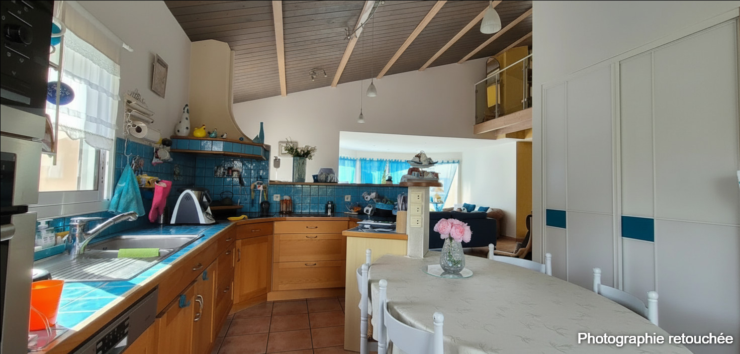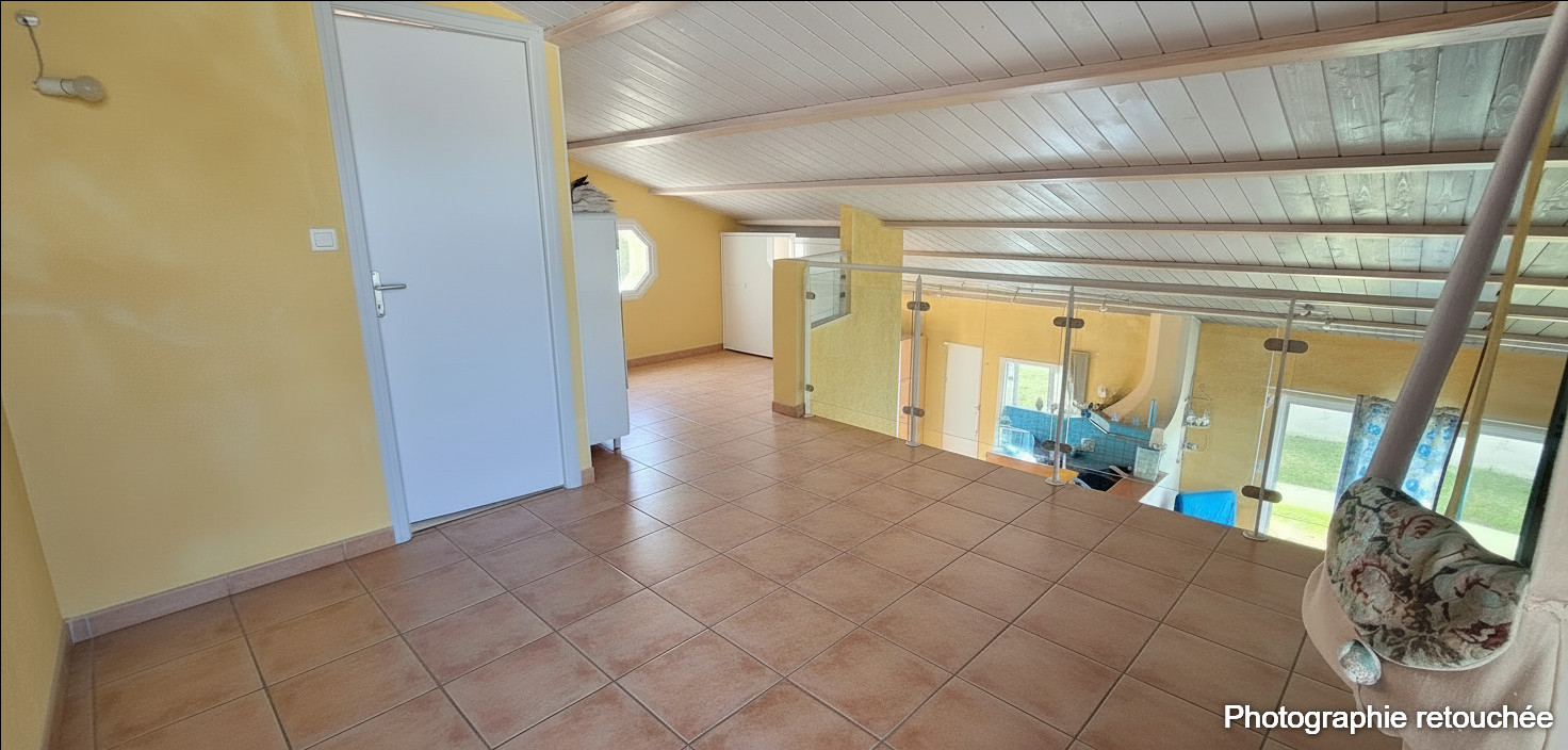 Une parenthèse méditerranéenne en coeur de bourg, entre sérénité, volumes et vue dégagée sur la campagne. A quelques pas des commerces et des écoles, 15 minutes de la GARE de l'Herbergement, cette maison offre un cadre de vie rare : une atmosphère de vacances, une vue ouverte sur la campagne et un environnement particulièrement paisible, tout en restant accessible à pied. Construite en 2000, la maison développe environ 144 m² habitables et séduit par ses volumes généreux et sa luminosité. Le salon-séjour de près de 50 m² constitue le coeur de la maison, largement ouvert sur le jardin et les terrasses. La cuisine aménagée et équipée d'environ 16 m² est fonctionnelle et tournée vers l'extérieur. Le rez-de-jardin propose également deux chambres d'environ 10,7 m², dont une avec terrasse privative et vue sur le jardin, une salle de bains, un WC indépendant et une buanderie de près de 15 m², offrant un vrai confort au quotidien. A l'étage, l'espace nuit se poursuit avec deux chambres d'environ 10,8 m², une salle d'eau, un WC séparé ainsi qu'un espace bureau, idéal pour le télétravail ou une activité indépendante. A l'extérieur, le terrain arboré de plus de 1 150 m², sans vis-à-vis, évoque une ambiance méditerranéenne et offre la possibilité d'implanter une piscine. Plusieurs préaux et garages complètent l'ensemble et répondent aux besoins de stockage, de stationnement ou de projets annexes. Un bien rare par son emplacement, son ambiance et son équilibre entre vie de famille, télétravail et douceur de vivre. Informations et visites sur demande Anthony BLAIS