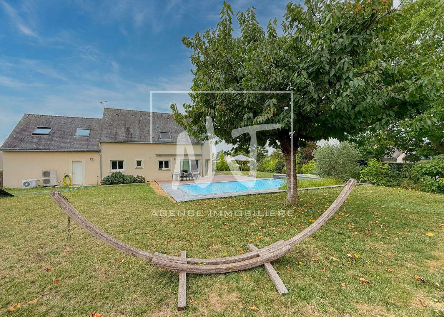 Située sur la commune de Terranjou, à 25 minutes d'Angers, dans le village de Martigné-briand, cette jolie maison de 2005, idéale pour une famille, vous séduira par : - Son emplacement en coeur de bourg, proche des écoles et commerces - Son grand jardin de plus de 1500 m² avec piscine couverte - Sa pièce de vie offrant une triple exposition - Sa vie de plain-pied - Ses 5 chambres - Son double garage - Ses performance énergétiques (DPE B - pompe à chaleur Air-eau de 2024) Cette maison offrant de très beaux volumes se compose au rez-de-chaussée : d'une entrée avec plafond cathédrale, d'une pièce de vie de près de 50m² donnant sur la terrasse et la piscine, avec poêle à bois et cuisine aménagée et équipée ouverte, d'une lingerie/arrière-cuisine, d'une chambre et sa salle d'eau privative, de WC. A l'étage, un pallier desservant 4 chambres dont une de plus de 35 m² au sol, d'une salle de bains avec douche, d'un dressing et de WC. Au coeur du jardin arboré, vous profiterez d'une piscine couverte et sécurisée de 10m X 5m et d'un abri de jardin. Visite vidéo sur demande Ref : 1711O (5.50 % honoraires TTC à la charge de l'acquéreur.)
