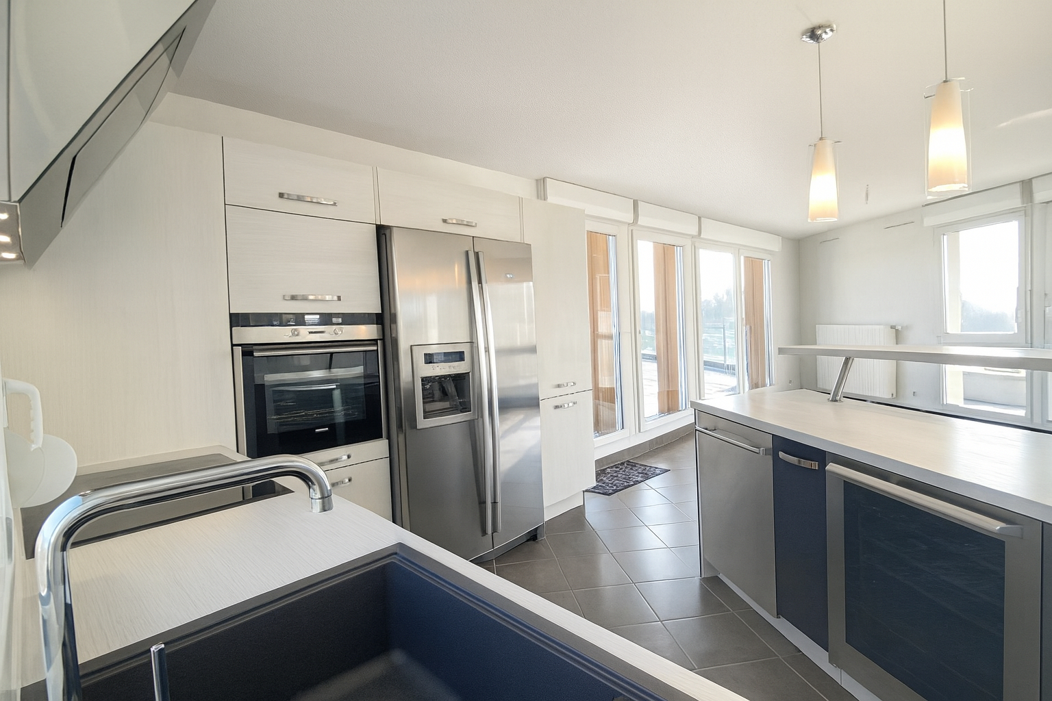 Situé boulevard St Symphorien à LONGEVILLE LES METZ, à proximité des autoroutes vers Luxembourg et de la gare SNCF ainsi que des commodités a 5min de l'immeuble (commerces, écoles, transports, ballades du plan d'eau) Superbe appartement, au 4 -ème étage d'un immeuble récent avec ascenseur, cet appartement de 113 m2 est composé d'une entrée, de 3 chambres dont une suite parentale avec douche privative, d'un salon-séjour lumineux, d'une cuisine ouverte équipée et intégrée (lave vaisselle, hotte, réfrigérateur US, cave à vin, four, plaques), d'un dégagement avec placard, d'une salle de bains et wc séparé. En ce qui concerne l'extérieur, vous pourrez profiter d'une vaste terrasse et 2 places de parking en sous sol sécurisé. DISPONIBLE de suite DPE C chauffage individuel gaz Loyer : 1470 euros + 120 euros charges (avance sur eau, entretien de chaudière , TEOM, communs) Dépôt de garantie : 1 mois de loyer hors charges honoraires : 1 243.88 euros (dont 339.24 euros pour l'état des lieux d'entrée)