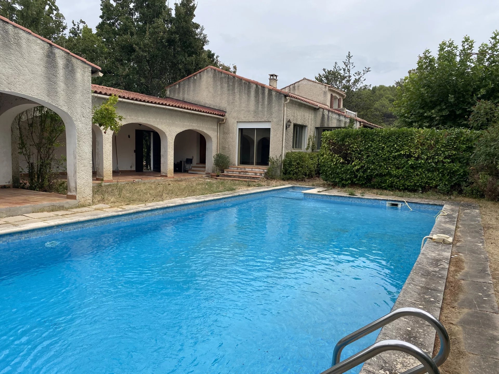 AURIOL – Sur 3300 m2 de terrain plat et clôt -Villa en parfait état 150 m2 –construite en vrai traditionnel de plain-pied - Hall d’entrée – salon 34m2 - salle à manger 25 m2 – cuisine indépendante équipée – 3 chambres – Salle d’eau – wc indépendant – Bureau en mezzanine bois – Grenier 30m2 aménageable plancher bêton (en partie aménagé pour une chambre et salle d’eau à terminer) – Grade Terrasse couverte (grand Patio) – Piscine 12X6 - local technique en sous-sol – Local chaufferie Pompe à chaleur neuve – Petit Mazet en pierres sur le terrain – grandes baies vitrées double vitrage – volets roulants électrique - chauffage pompe à chaleur – cheminée foyer ouvert - assainissement fosse septique – Classe énergie C - effet de serre A – Prix de vente 630 000€ les honoraires sont à la charge du vendeur - Contact agence JC BARATTOLO 06.09.53.73.27 - @: barattolo-immo@wanadoo.fr