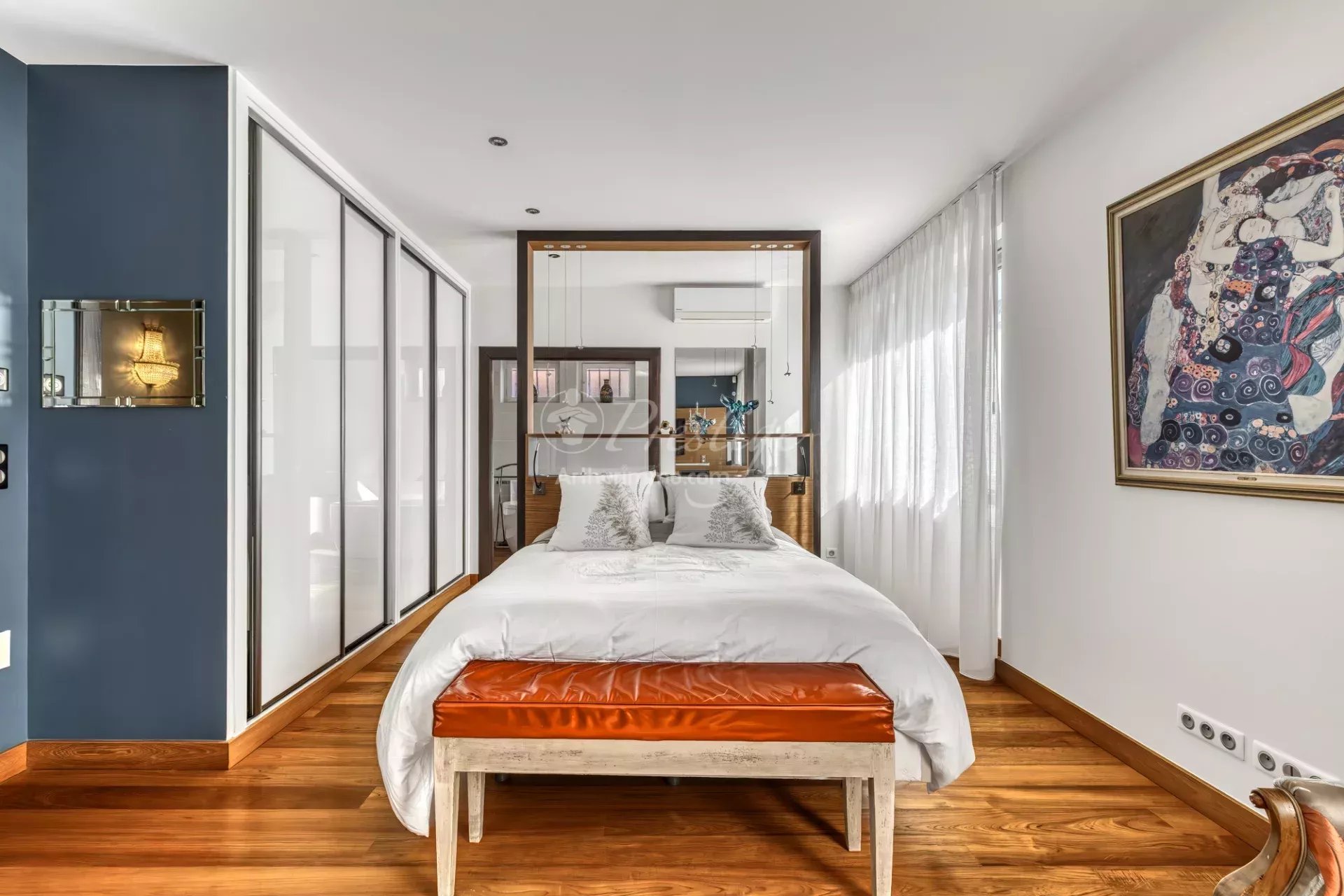 Prestations: baies vitrées à galandage, moustiquaires et volets roulants motorisés, chauffage au sol par chaudière gaz basse température, climatisation, stores motorisés sur la verrière, stores motorisés sous la terrasse, stores bannes au dessus de la piscine, système de vidéo surveillance avec alarme, matériaux nobles (marbre, parquets massifs, huisseries, menuiseries intérieures...).
