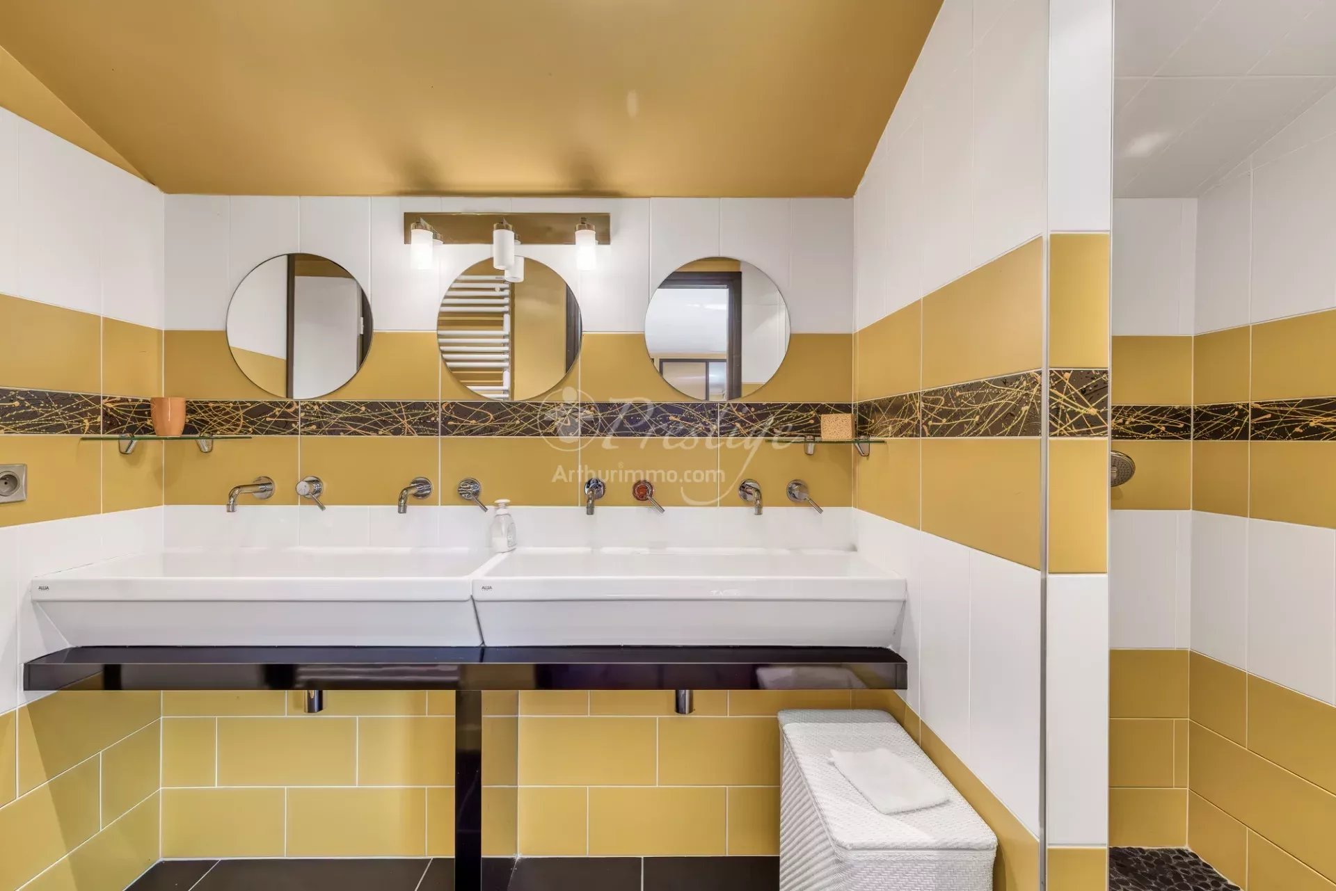 Enfin, au rez-de-jardin, tout a été pensé pour s'abandonner aux douceurs de la vie : cuisine d'été, salle de sport avec SDE et WC accessible depuis la piscine, salle de billard et cave à vin.
