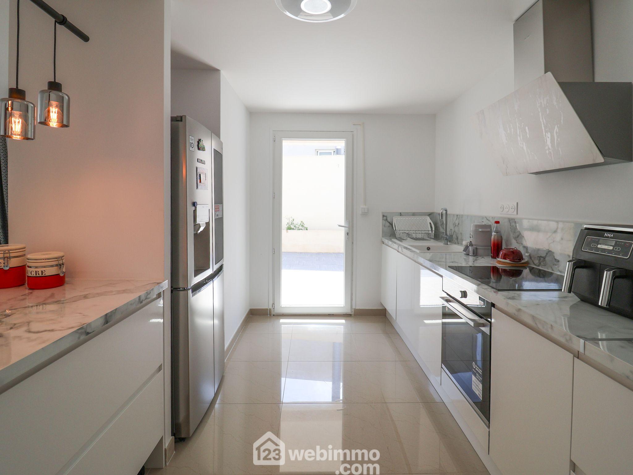 Votre agence 123webimmo l'immobilier au meilleur prix vous présente : SORMIOU. EXCLUSIVITE. Aux portes du parc National des Calanques. Jolie maison familiale récente de type 6 de 130 m² exposée au sud-ouest bâtie sur une parcelle de 300 m². Elle est aujourd'hui aménagée avec goût en deux habitations sur deux niveaux réunis par un escalier intérieur, chaque habitation disposant d'une entrée indépendante. Elle se compose au premier niveau d'un très beau séjour cuisine de 37 m² au total qui s'ouvre sur un agréable extérieur. Une chambre avec une salle de douche et des toilettes séparées complètent le niveau. L'étage se compose d'un lumineux séjour ouvert sur une terrasse de 15 m², d'une cuisine équipée, de 2 chambres et d'une salle de douche complétée par des toilettes séparées. Climatisation réversible. Le terrain offre la possibilité de stationner 3 véhicules à l'intérieur.