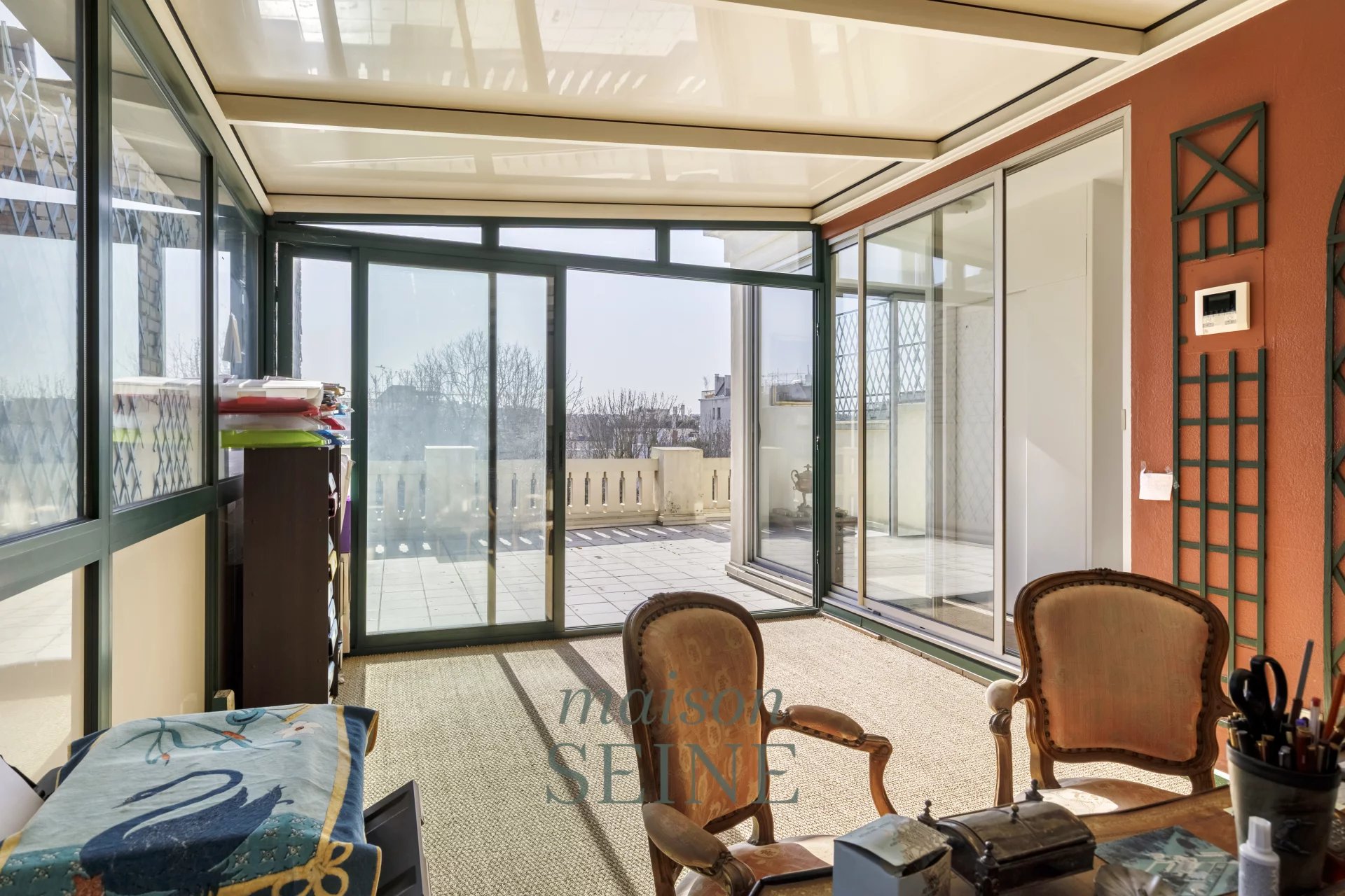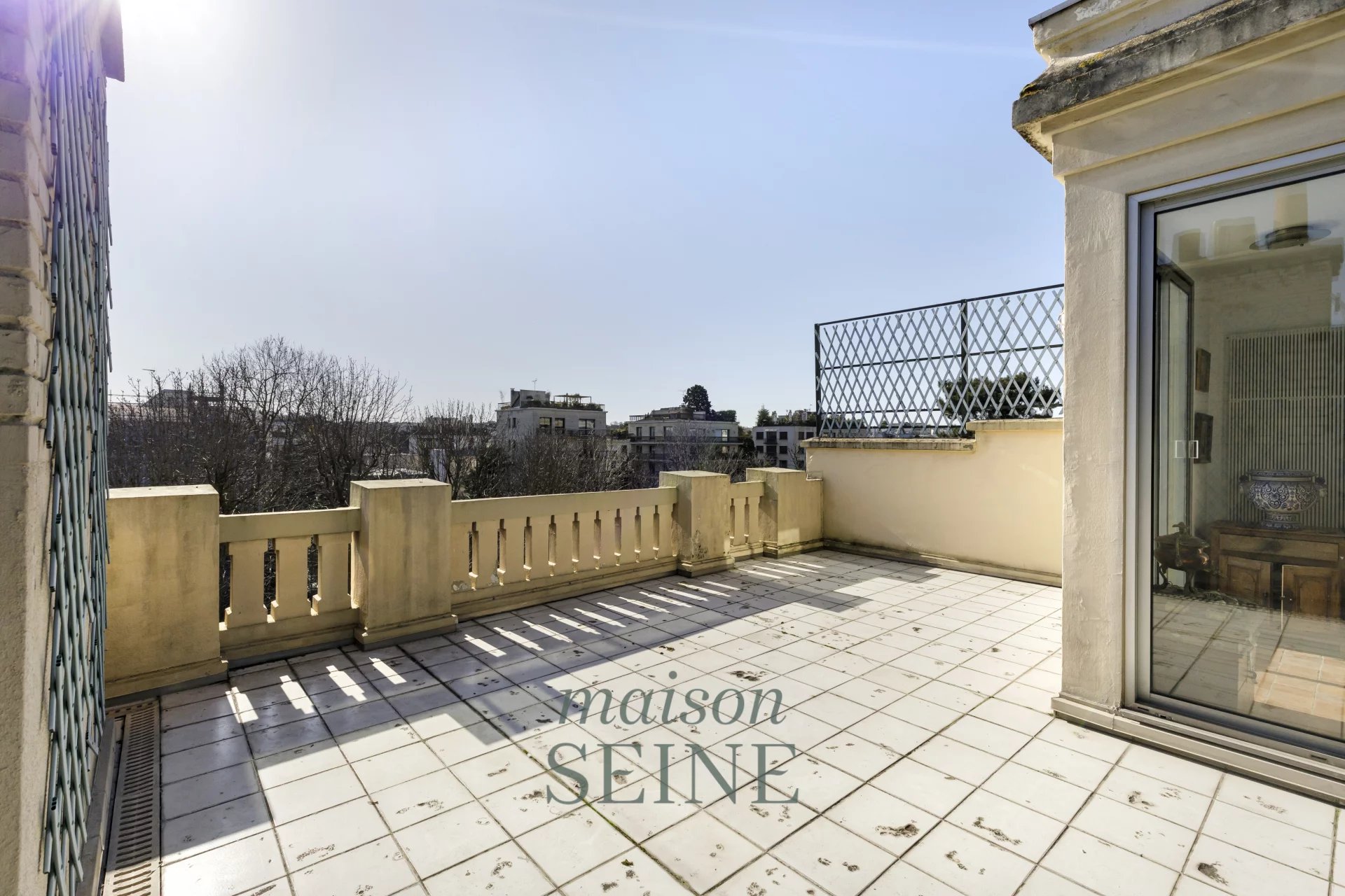 Idéalement situé dans un environnement résidentiel, calme et verdoyant, sur un grand boulevard arboré et à proximité des commerces et des écoles réputées du quartier, élégant hôtel particulier totalement traversant, d'une superficie de 374 m² répartis sur quatre niveaux plus sous-sol total, le tout desservi par un ascenseur.