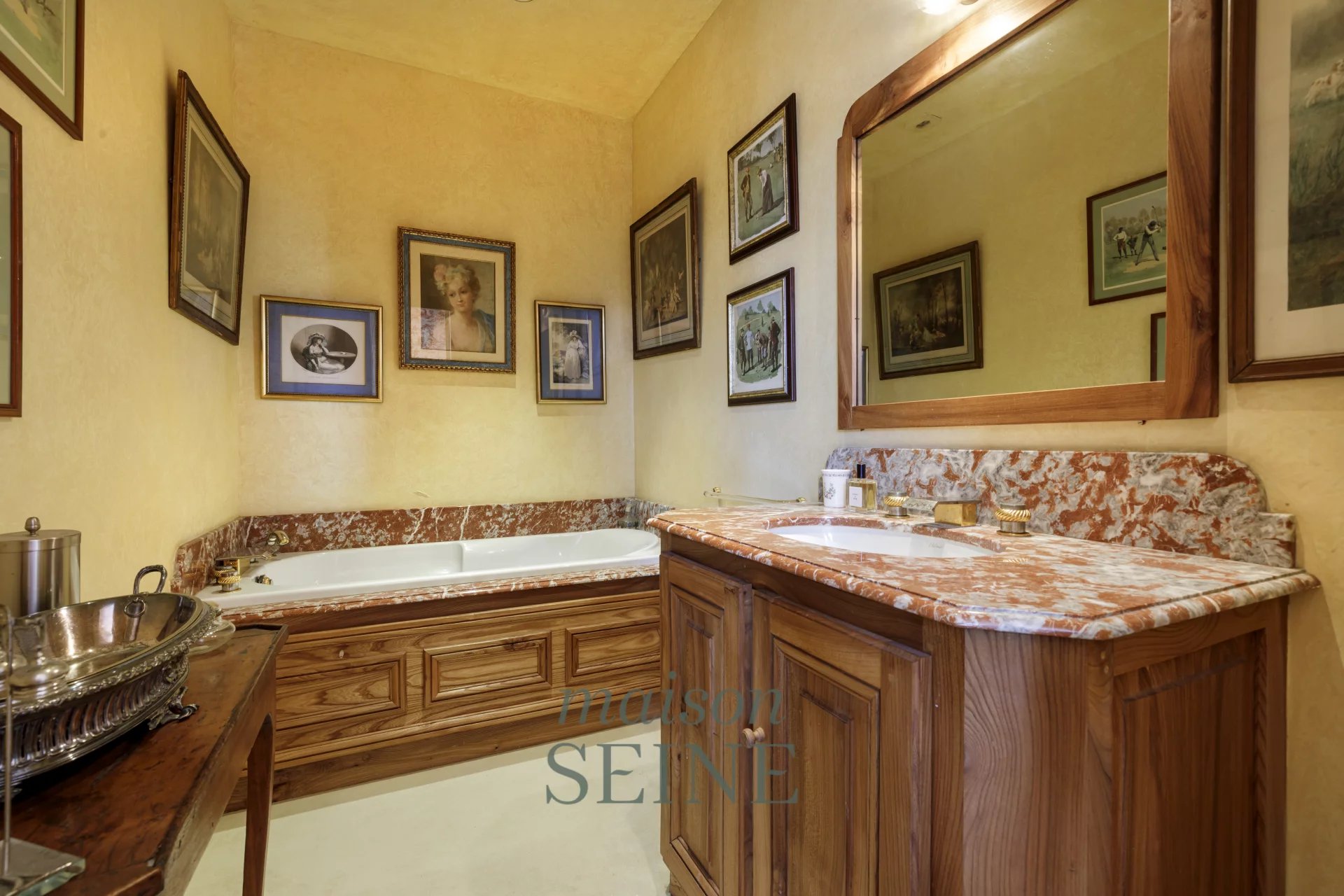 - Au 3ème étage, grand salon aménagé en bureau avec de très belles boiseries, une petite chambre avec sa salle de bains et toilette ;