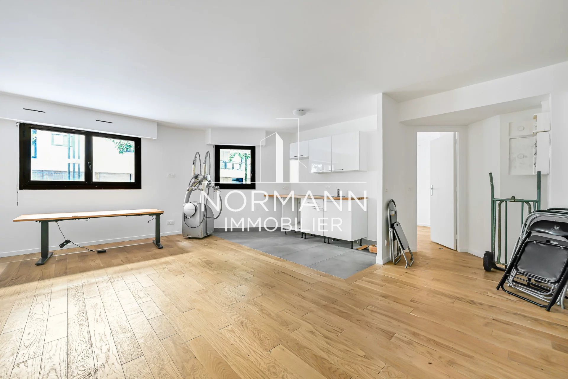 LEVALLOIS - GEORGES POMPIDOU - PROFESSION LIBERALE POSSIBLE Appartement 2 pièces d'une superficie de 52 m2 situé dans un bel immeuble récent de standing, en rdc. Il se compose: d'une entrée, d'un grand séjour avec cuisine ouverte, d'une chambre, d'une salle de bains et d'un wc indépendant. Situation géographique exceptionnelle, à proximité immédiate des commerces et des transports. Normann spécialiste de l'immobilier résidentiel est à votre disposition 7j/7. Normann IMMOBILIER 0145716040