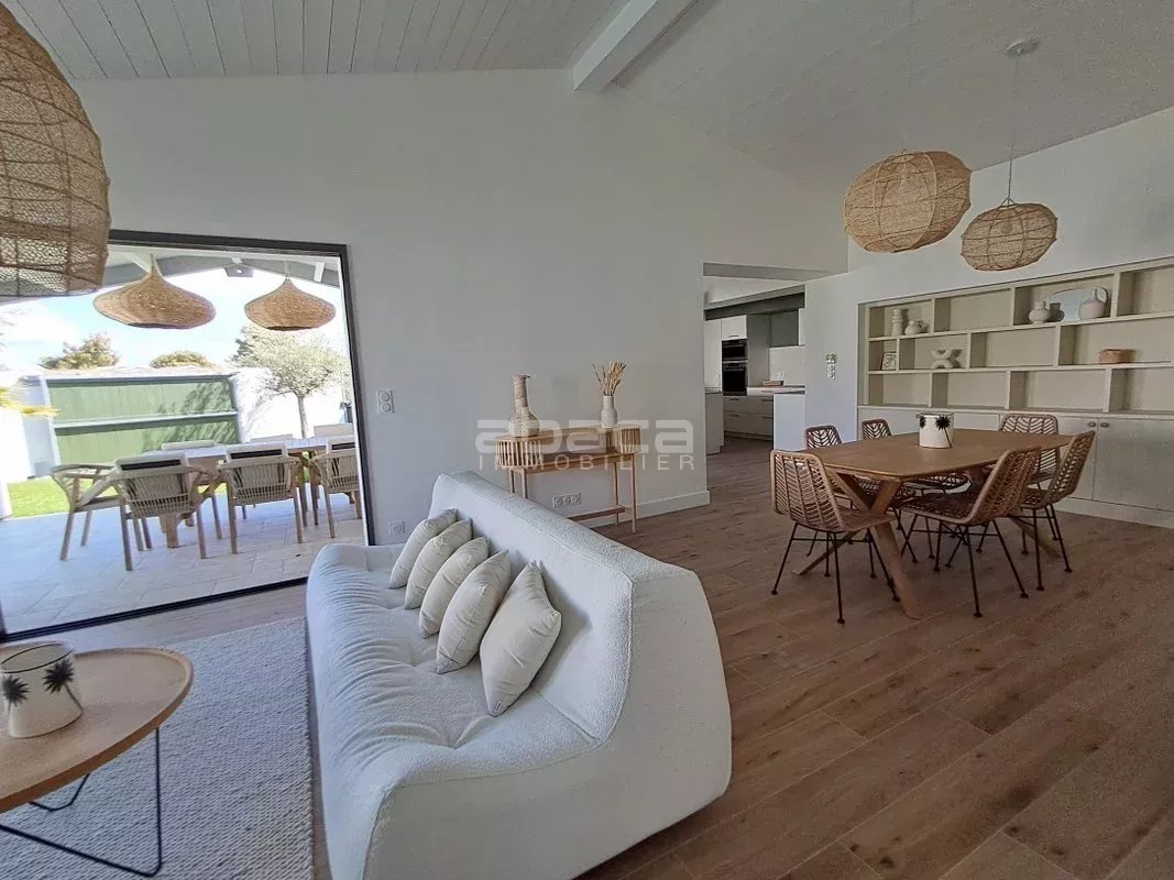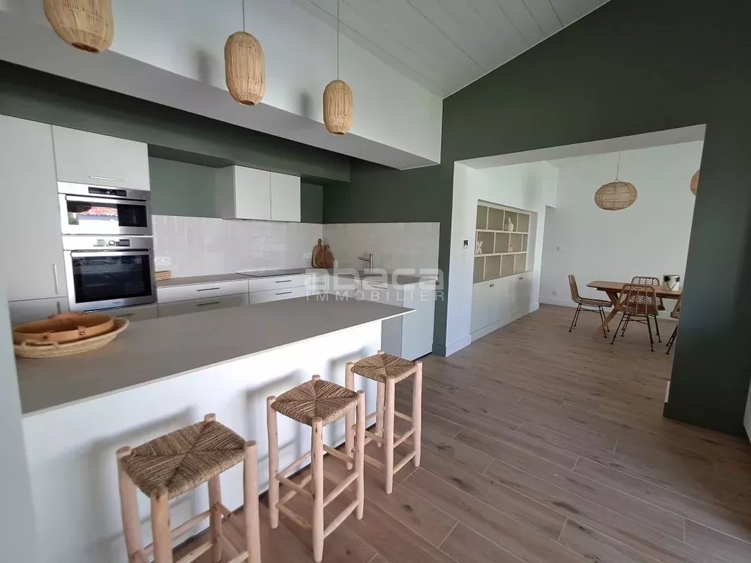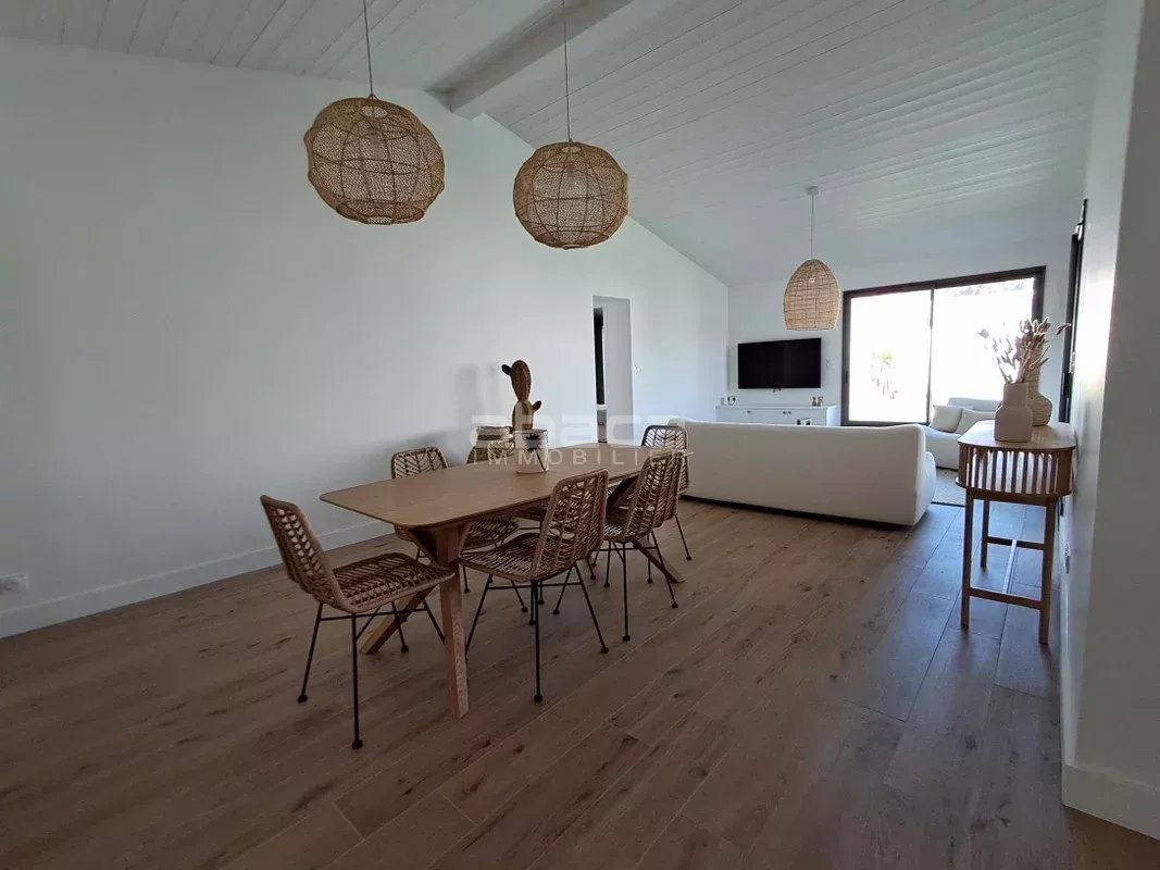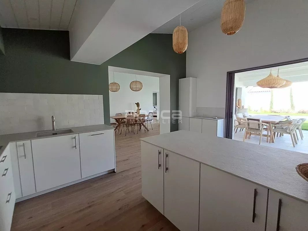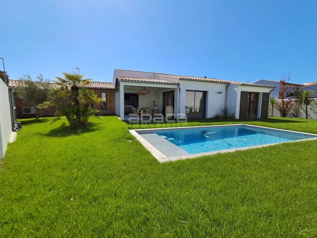 Maison de plain pied comprenant entrée, pièce de vie avec cuisine ouverte aménagée et équipée, 3 chambres, un dressing, 2 salles d'eau, 2 wc, cellier, cave et garage. Piscine et local technique, le tout sur une parcelle de 439 m².