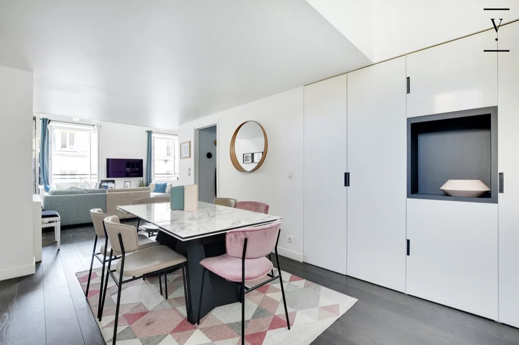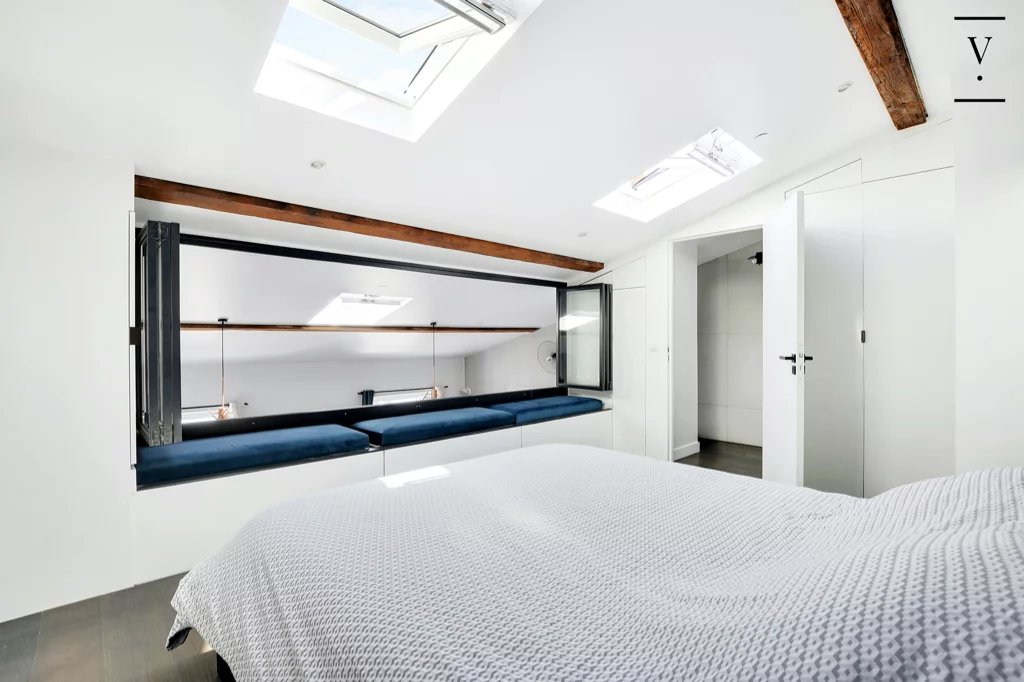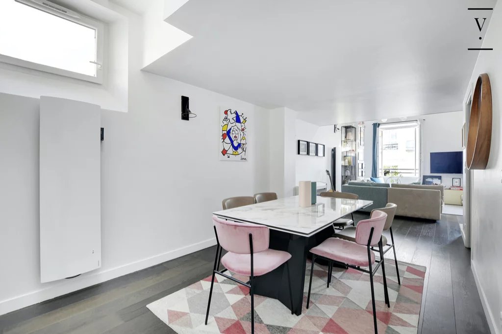 Situé au 3ᵉ et dernier étage d’un bel immeuble, cet appartement de 68 m² Carrez (74 m² au sol) a été entièrement rénové par architecte, avec des prestations soignées. Il se compose d’une vaste pièce de vie lumineuse côté rue, d’une cuisine ouverte aménagée, d’un WC indépendant, d’une chambre et d’une salle de bains avec WC. L’appartement séduit par ses beaux volumes en open space, sa belle luminosité et ses nombreux rangements. La création d’une seconde chambre avec salle d’eau attenante est facilement envisageable, tout en conservant un double séjour. Une cave en sous-sol complète ce bien.