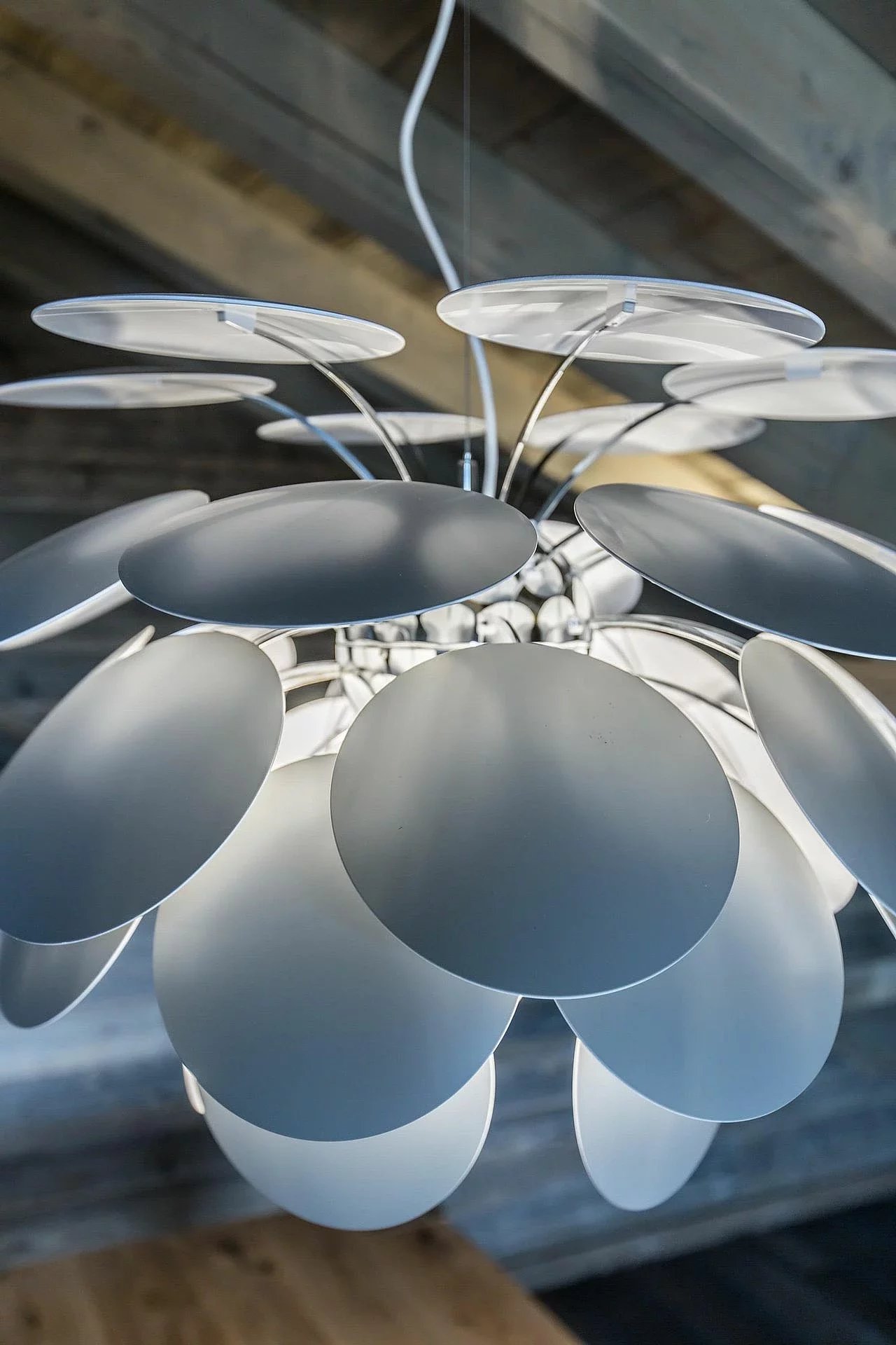 Séjour cathédrale de 71 m² avec cheminée, salle à manger et cuisine ouverte haut de gamme