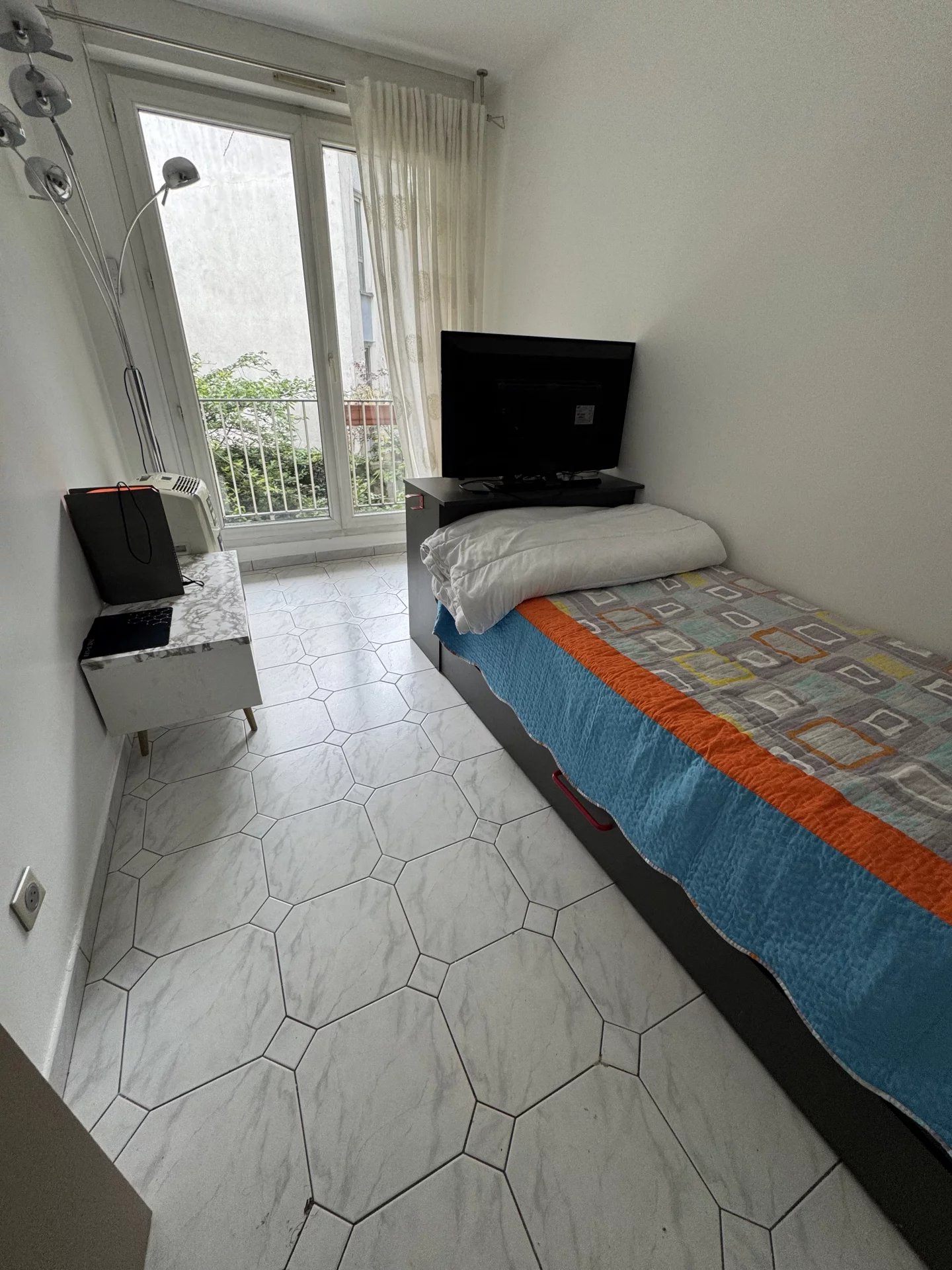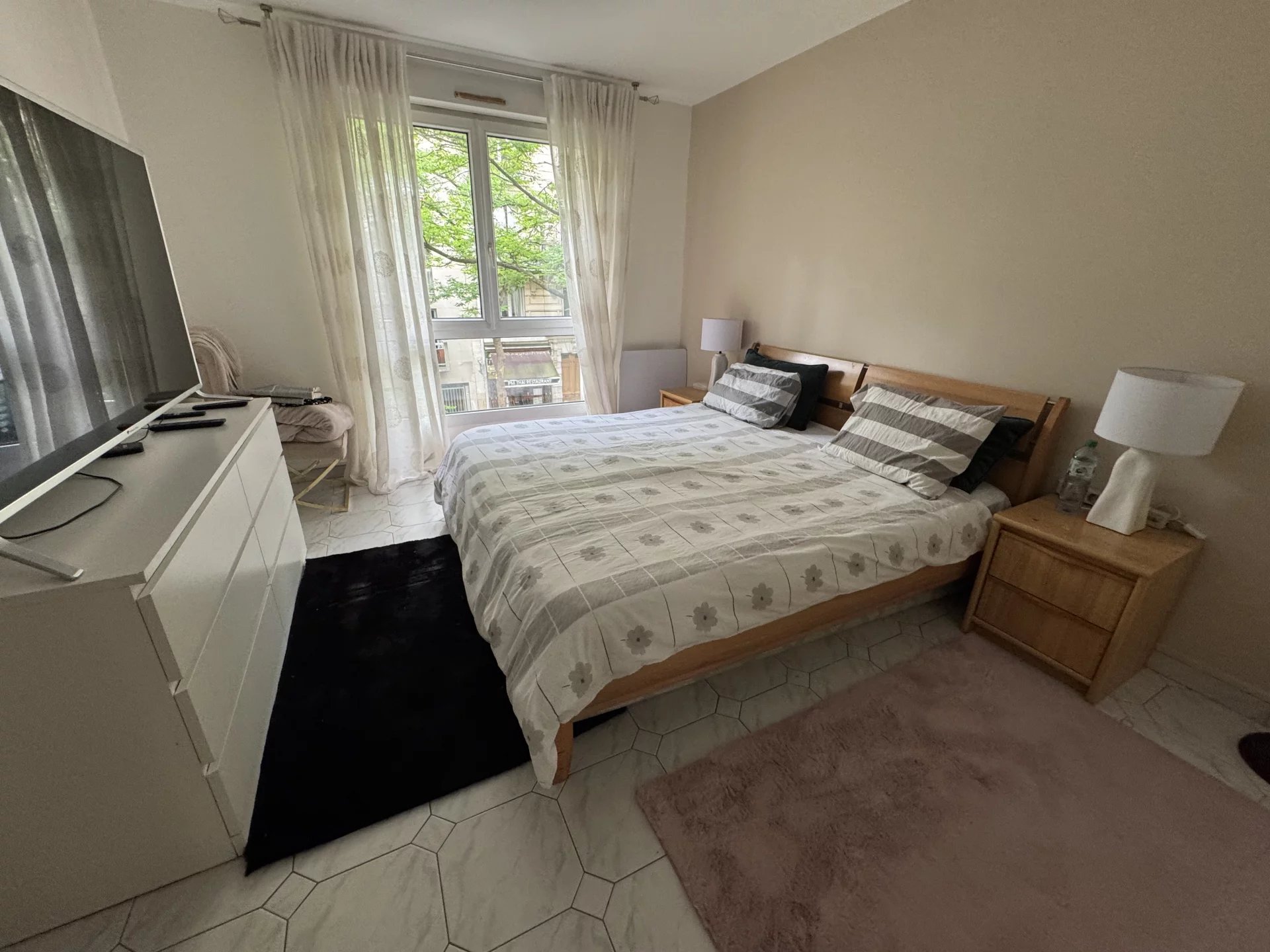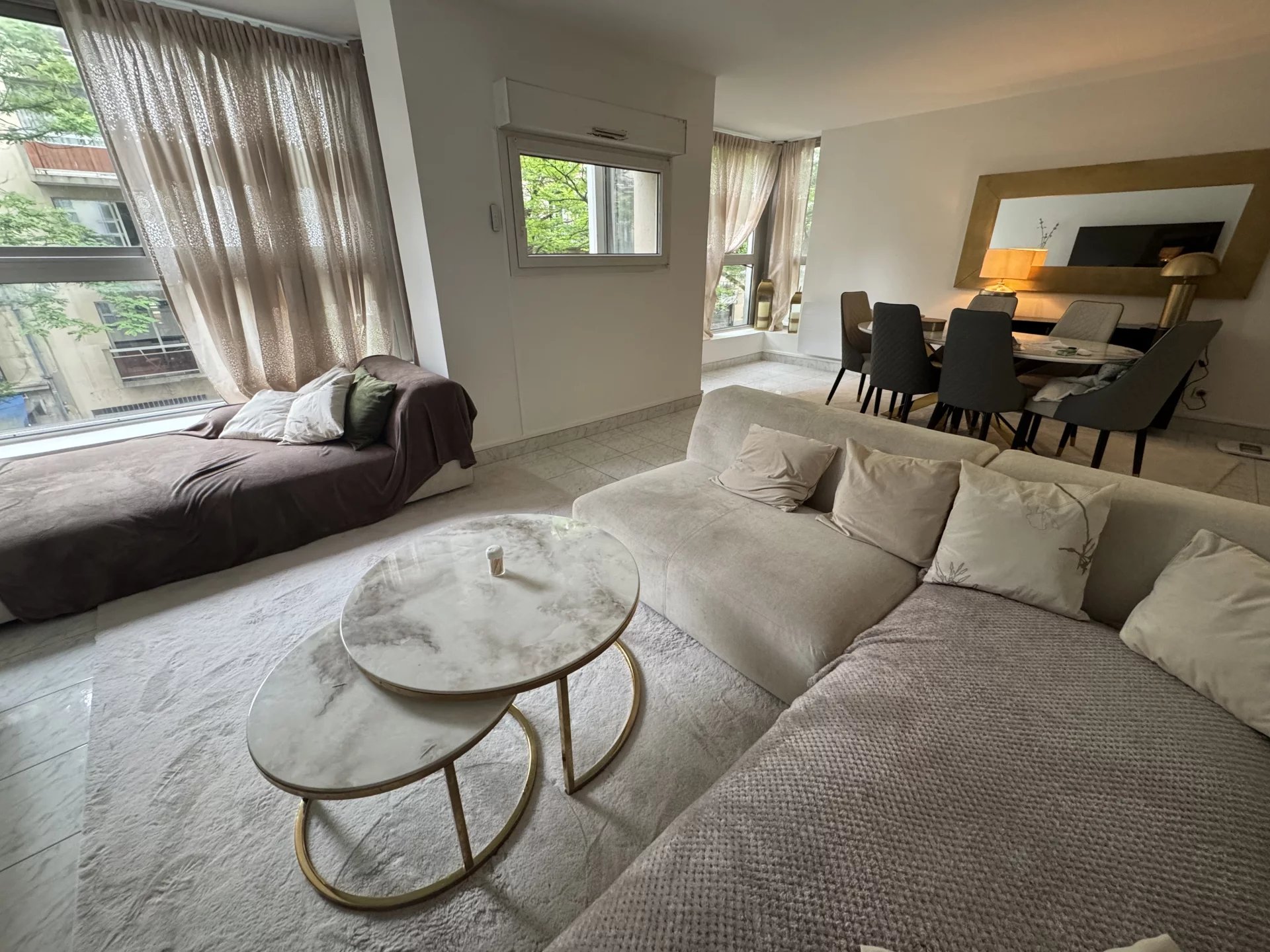 Au pied du marché Secrétan, à quelques pas du parc des Buttes Chaumont, un appartement traversant de 90m² environ, au 2eme étage avec ascenseur d'un immeuble daté 80/90. L'appartement est calme et clair. Il est composé d'un grand salon et d'une chambre coté rue, et deux chambres avec balcon coté jardin. Deux salle d'eau, des WC séparés. Des rangements. Une cave et un parking. Bon état général.