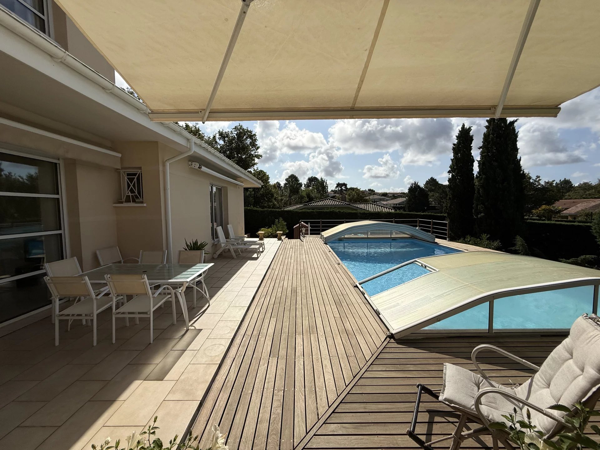 Dans un quartier résidentiel prisé de La Teste de Buch, cette maison d'architecte de 200 m² est érigée sur une vaste parcelle de plus de 1300 m² offrent un cadre de vie idéal et une intimité préservée. La pièce de réception de 65 m² s'ouvre sur plusieurs terrasses et une piscine de 10 X 5 m exposée plein sud . Un espace nuit accueille trois chambres dont une suite parentale. Une véranda offre un espace de vie supplémentaire. A l'étage de la maison, un studio indépendant permet une éventuelle rentabilité locative. Un double garage est un atout supplémentaire comme la possibilité d'agrandissement selon les règles du PLU. Contactez nous pour une prochaine visite. Les informations sur les risques auxquels ce bien est exposé sont disponibles sur le site https://errial.georisques.gouv.fr/#/