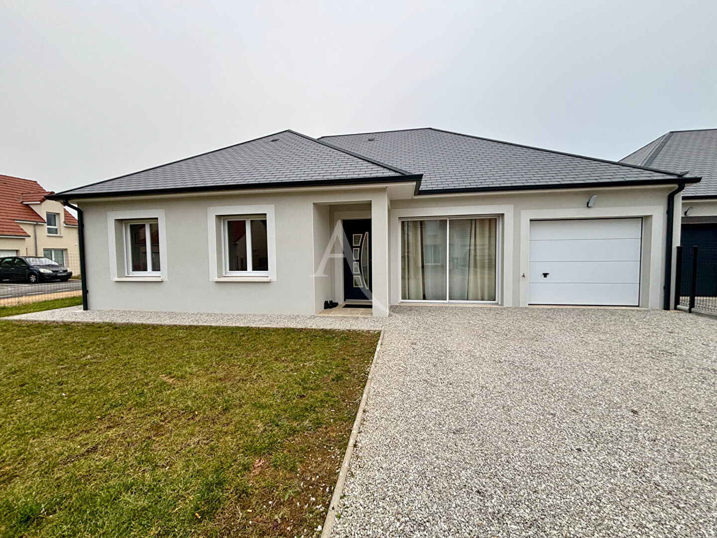 CONTRES - Dans un secteur résidentiel proche commodités, supermarchés accessibles à pied. Maison récente fonctionnelle entièrement édifiée de plain pied aux normes RE2020 bénéficiant d'un chauffage au sol par pompe à chaleur. Celle-ci comprend une belle pièce de vie avec cuisine ouverte d'environ 40 m², cellier, trois chambres dont une parentale avec douche privée, une seconde salle d'eau avec WC et WC indépendant. Garage attenant carrelé et terrain clos d'environ 450 m².