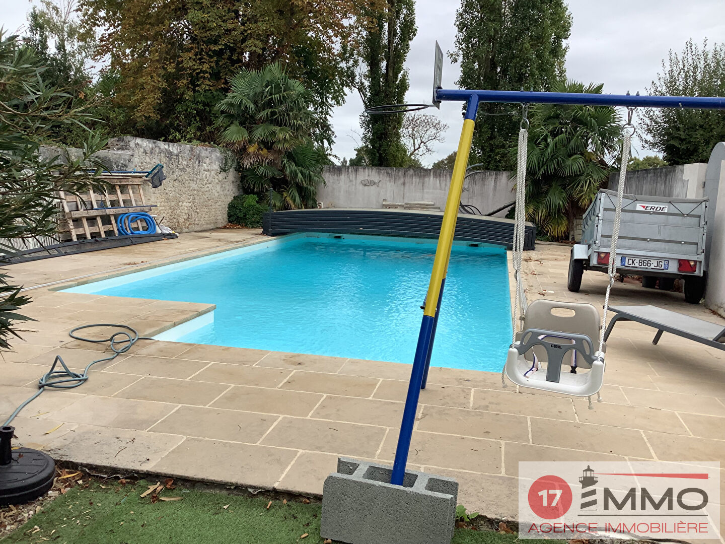7Mn CHATELAILLON Maison coeur de bourg de Thairé Beau potentiel avec travaux de finition à prévoir. Entrée, Belle Pièce de vie + cuisine américaine équipée, 1 chambre en rez de chaussée , WC. Atelier. A l'étage: 3 chambres, sdb, sde, palier/Salle de jeux. Terrain clos et paysagé avec piscine. (4.03 % honoraires TTC à la charge de l'acquéreur.)