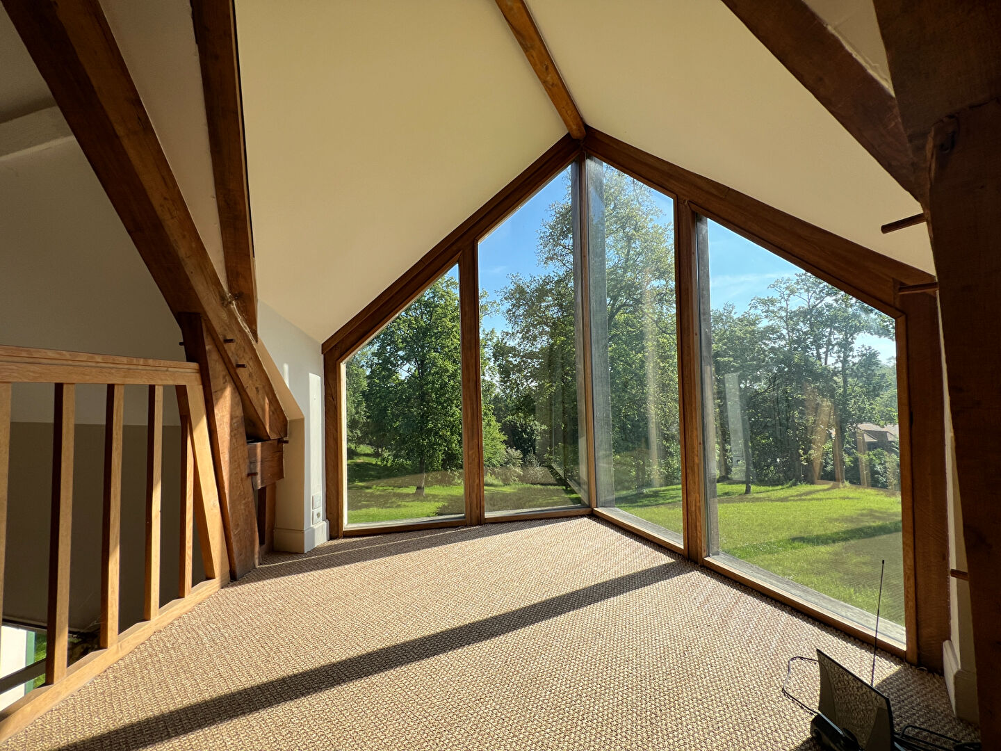 REF: 2695 Situation exceptionnelle pour cette très belle propriété aux portes de Montfort avec la vie de village à pieds , le calme absolu, la vue dégagée et l 'environnement "Nature" . Maison récente de 1996 édifiée sur un magnifique parc arboré de plus de 1 hectare ( prairie et bois ) avec séjour + salle à manger avec cheminée , donnant sur terrasse et jardin avec vue sur la vallée -Cuisine aménagée et belle suite parentale . Al 'étage: 4 chambres +2 salles de bains -Espace mezzanine sur séjour ( coin bureau ) . Sous-sol total -Garage 2 voitures 43m2. Ecoles , commerces , transports et Forêt Domaniale à pieds -Rare , Exceptionnel . (3.20 % honoraires TTC à la charge de l'acquéreur.)