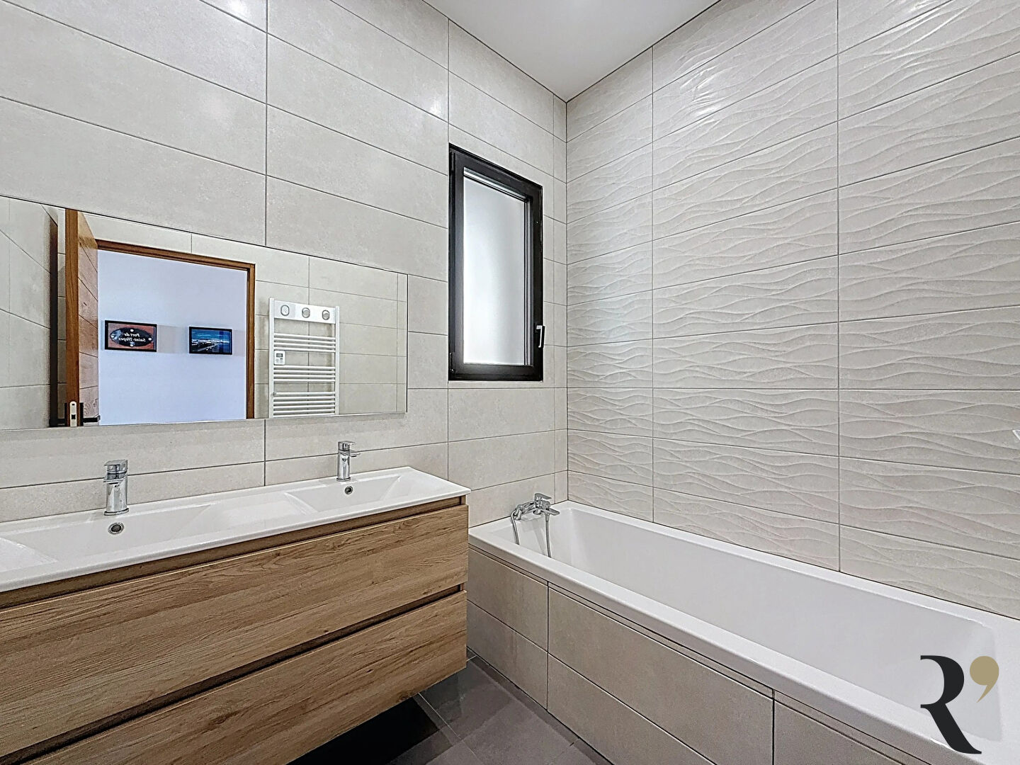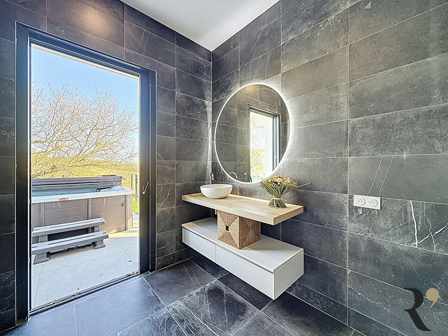 Idéalement située sur les hauteurs de PIN-BALMA, avec une magnifique vue dégagée sur le Lauragais, venez découvrir cette superbe contemporaine de 2022 sur une parcelle paysagée de 1315 m² avec piscine. En entrant, vous serez séduit par une belle entrée avec grand placard, un WC et un bureau de plus de 14m², puis par une magnifique pièce de vie baignée de lumière de plus de 75m² avec une hauteur sous plafond de 3 mètres, triple exposition EST-SUD-NORD avec cheminée INSERT et deux magnifiques baies vitrées à galandages dont une de 7M60 qui permet de profiter de l'intérieur comme de l'extérieur tout en donnant accès à la piscine, son jardin plat sans vis à vis en partie clôturée et à ses deux terrasses dont une couverte. Dans la pièce de vie vous profiterez d'une superbe cuisine entièrement aménagée et équipée avec grand plan de travail et bar. Construite de plain-pied avec un sous-sol complet vous continuerez votre visite en découvrant un premier coin nuit composé de trois chambres avec placards, d'une salle de bains avec douche, baignoire et meuble double vasque, d'un WC séparé et d'une lingerie. A l'opposé, du côté des parents un grand dressing, une magnifique salle d'eau avec une porte à galandage donnant sur une terrasse intime avec JACUZZI, un WC indépendant et une chambre très lumineuse avec ses deux baies vitrées EST et SUD sans vis à vis donnant sur la terrasse avec une magnifique vue dégagée pour vos soirées d'été. Au sous-sol vous trouverez un grand garage de plus de 150m² pouvant accueillir plusieurs véhicules, mais également un bureau de plus de 13 m², un WC, un débarras et une grande salle de jeux d'environ 40 m². (Toutes ces pièces non prises en compte dans la surface habitable) Comment ne pas finir cette visite sans vous arrêter sur une superbe cave à vins pour amateurs avertis ! En sortant de cette belle maison vous serez comblé par un appartement T2 totalement indépendant d'environ 35 m² avec une pièce de vie très lumineuse, une cuisine équipée, une salle d'eau et une chambre avec placard ainsi qu'un balcon. Les plus : Maison très lumineuse, menuiseries en aluminium, baies vitrées de 2m40 de hauteur, centralisation des volets roulants, plancher chauffant rafraîchissant, carrelage pièce de vie 90 par 90, Piscine au sel chauffée de 3 par 8 avec volet roulant immergé. L'avis de Rely'on : On adore, vrai coup de coeur de toute l'équipe ! Rely'on Immobilier : 05 62 80 65 89 / 06 08 13 13 35